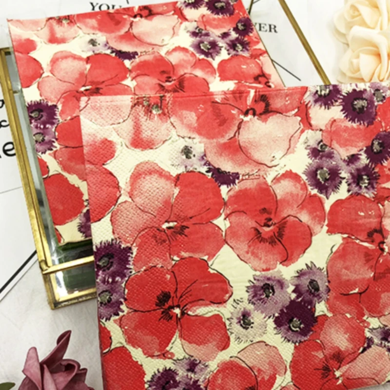 10/20p Vibrant Red Poppy Flower Paper Napkins Watercolor Floral Elegant Table Decor Soft Disposable ...
