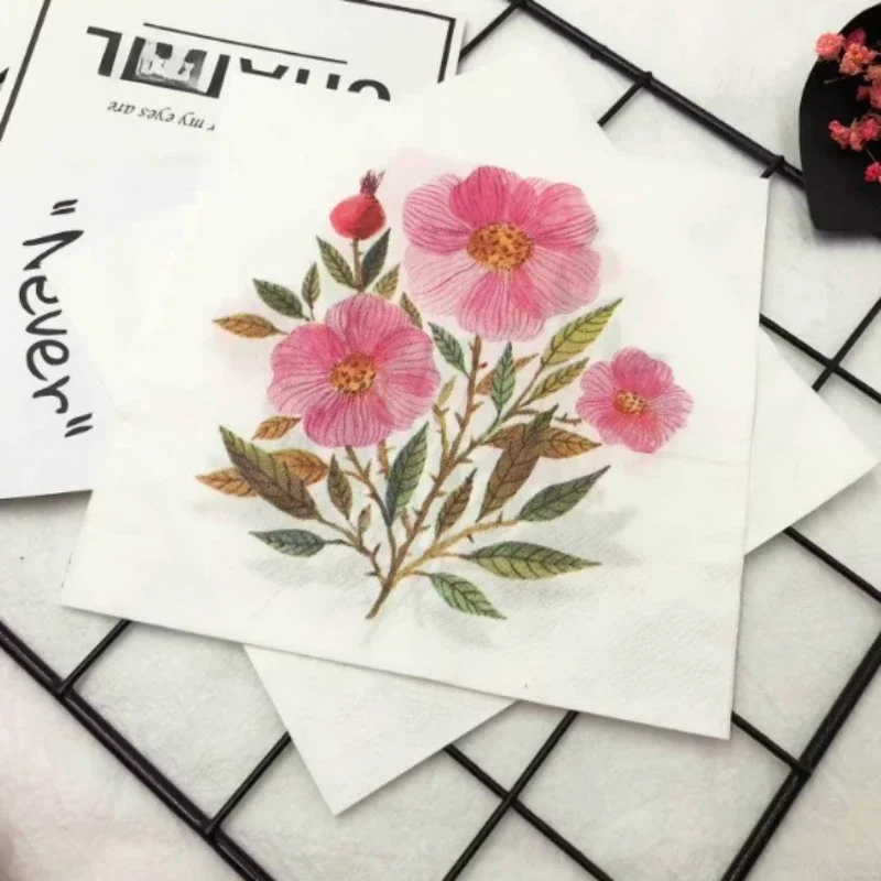20pcs/P Wholesale Customized Floral Printed Napkins on White Backgr...