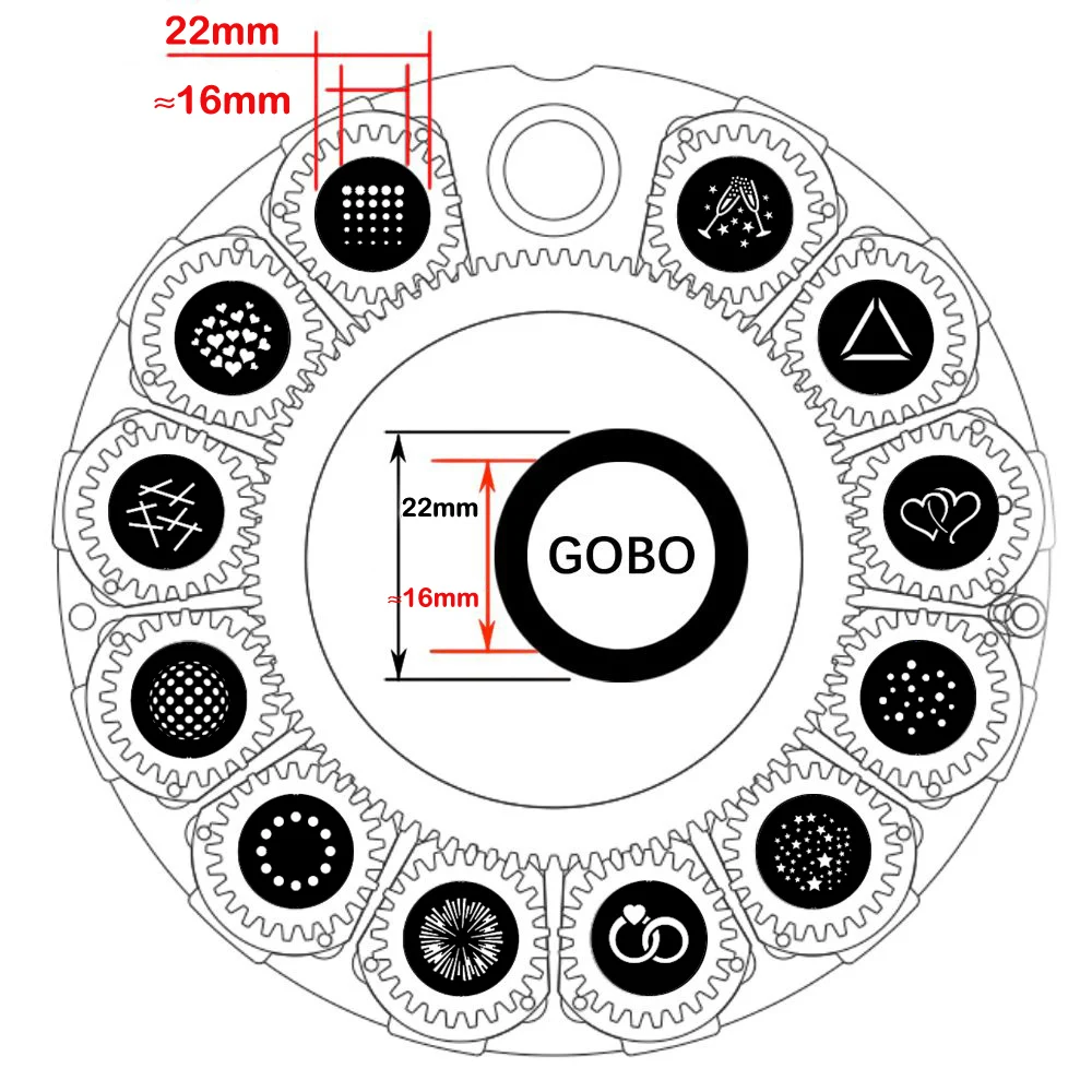 22mm 0.866 inch Outside diameter Moving head light gobo, The patter...