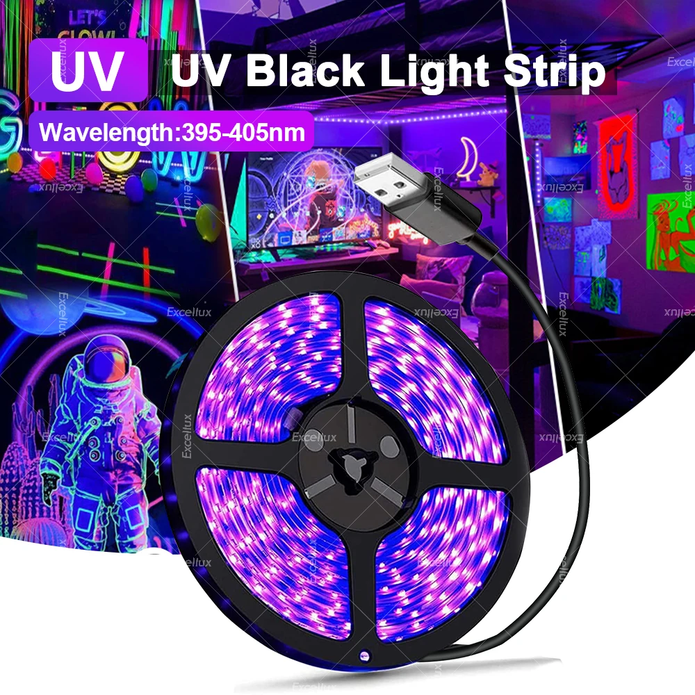 UV LED Light Strip Flexible LED Strip Light Ultraviolet UV Lamp 395-405nm Black Light 2835 SMD DC5V ...