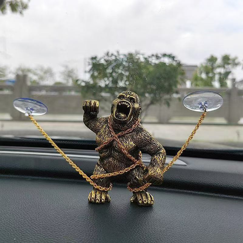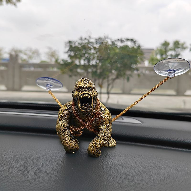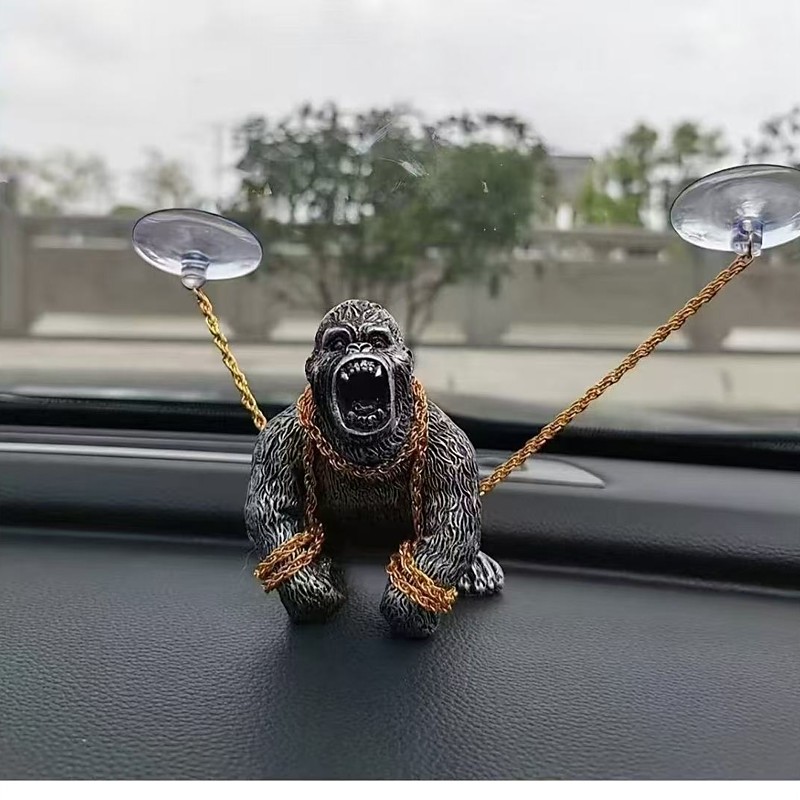 Resin Gorilla Car Dashboard Decor, Powerful Bound Ape Figurine, Bol...