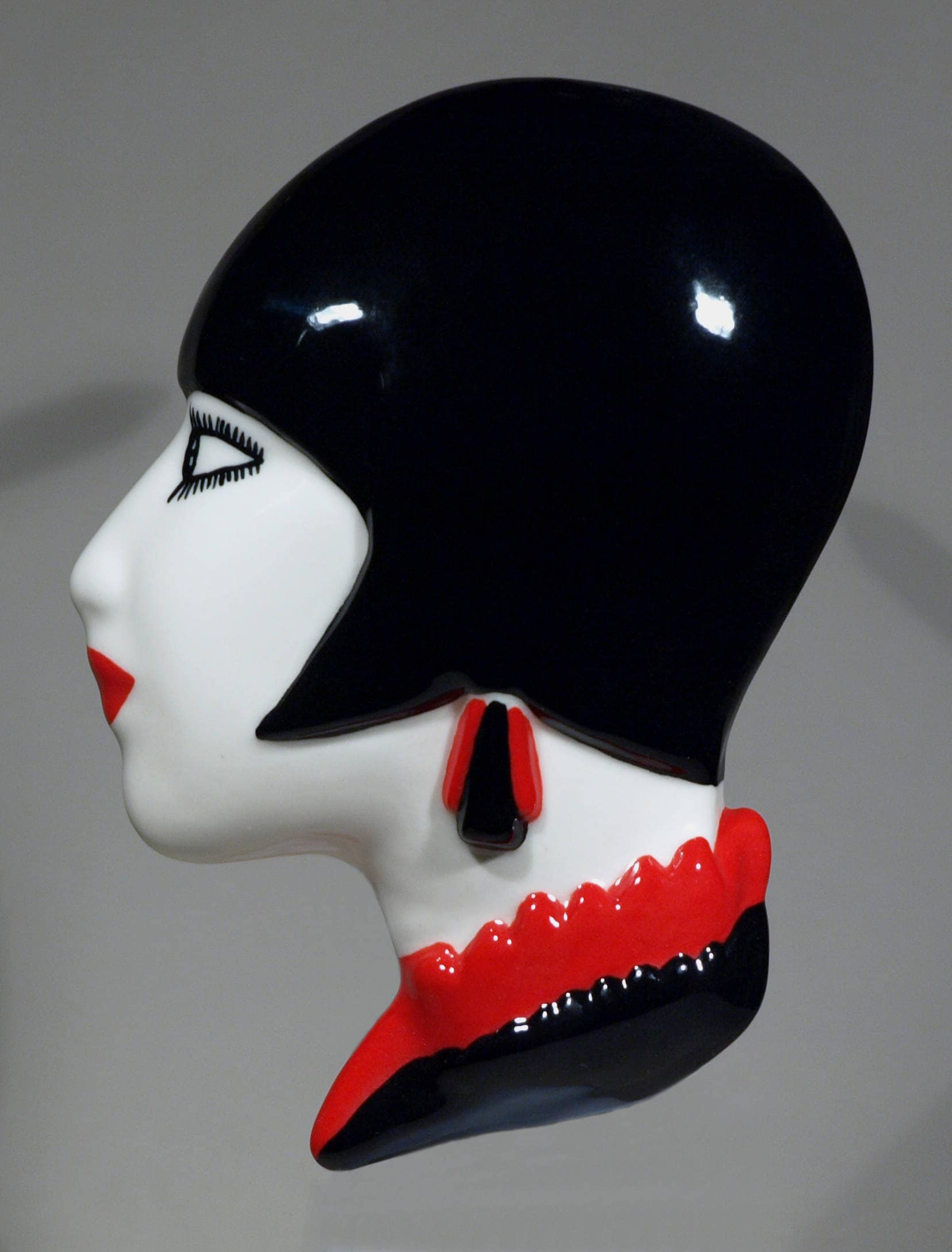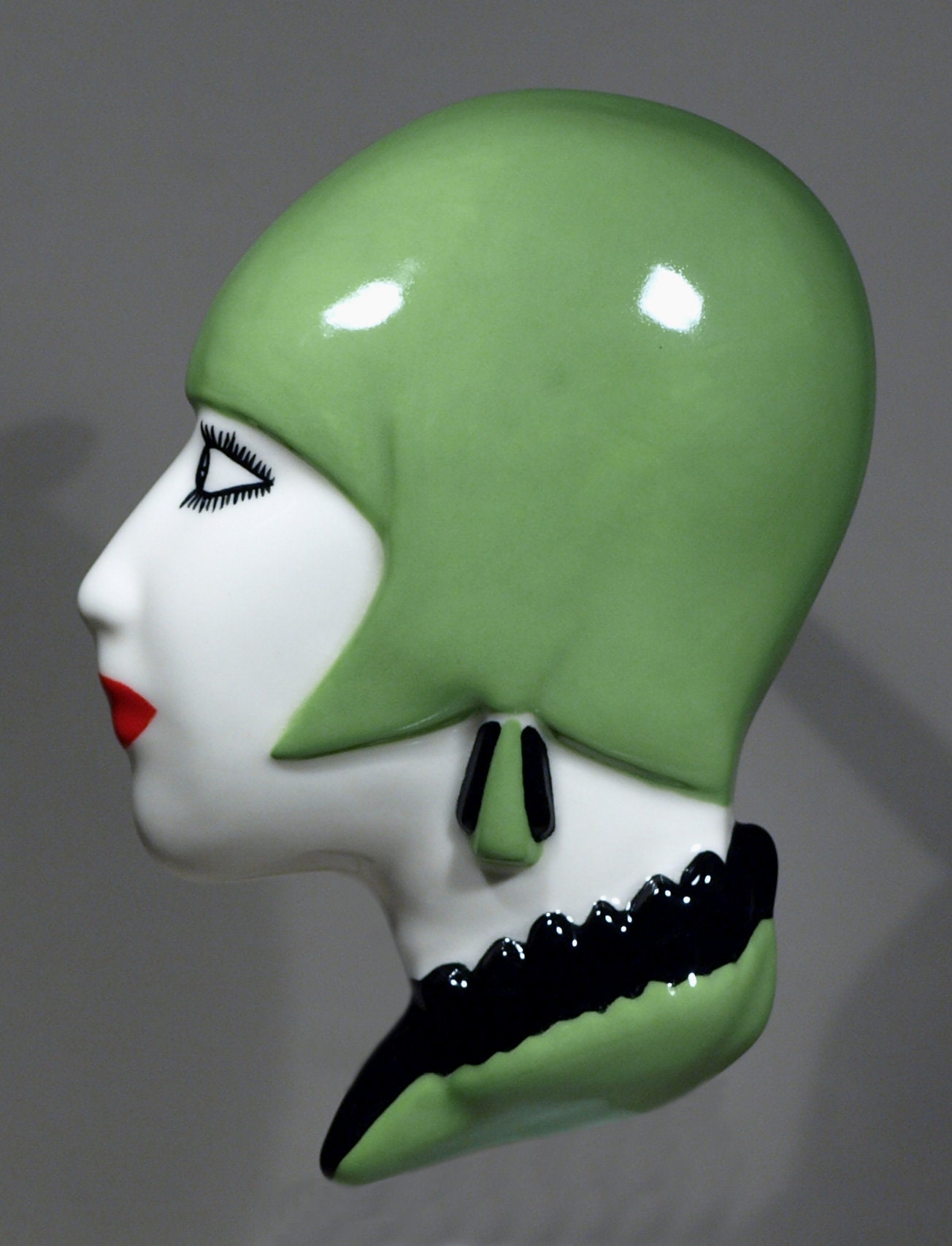 "This is a stylish and attractive ceramic wall mask in a unique Art Deco inspired Flapper Girl ...