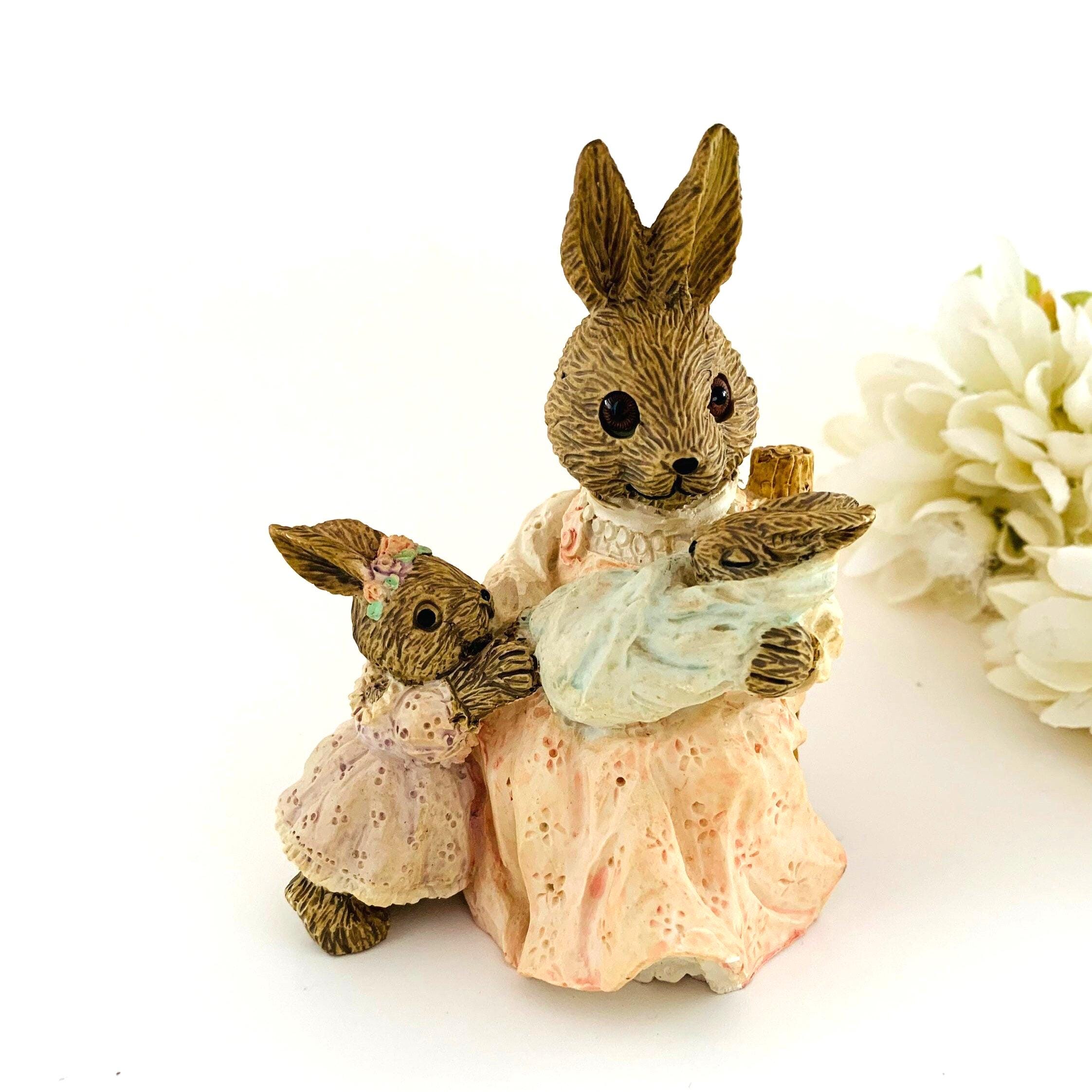 Vintage Bunny Mom Little Girl & Baby Figurine - Mervyns 1993 Bu...