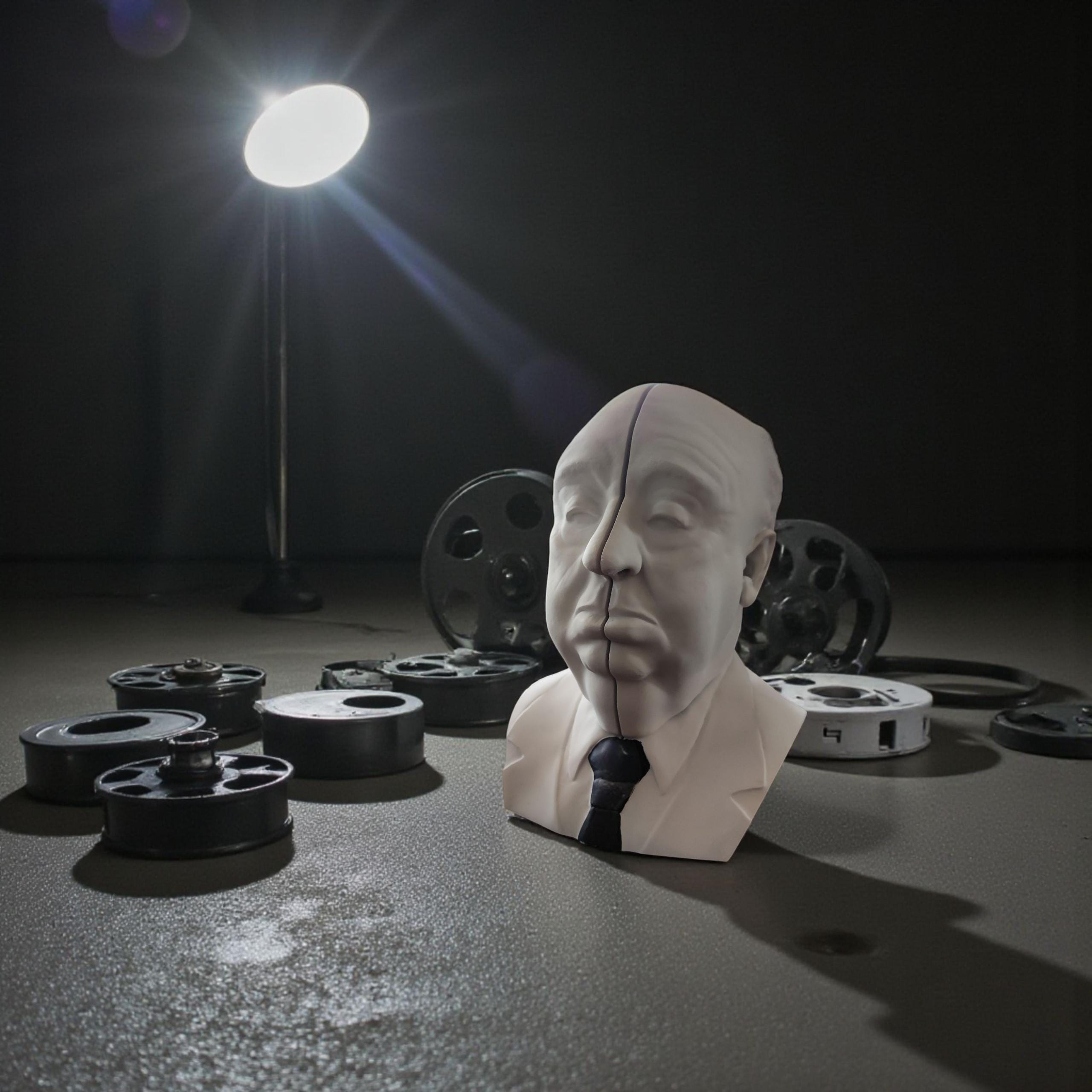 "Transform your bookshelf with Alfred Hitchcock bust bookends, where suspenseful cinema meets t...