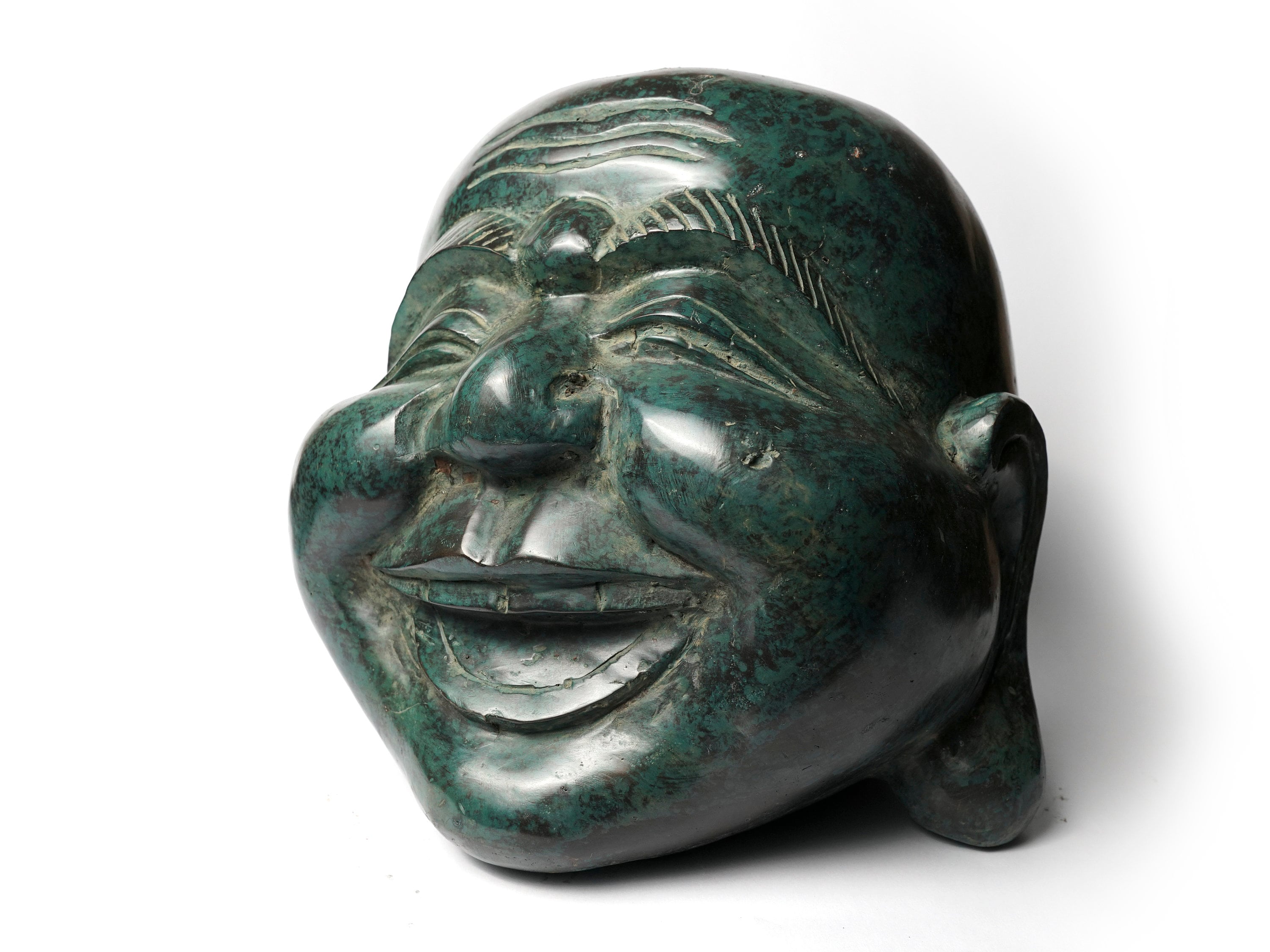 Large Bronze Laughing Buddha Head Sculpture, Buddha Head, Buddha Fi...