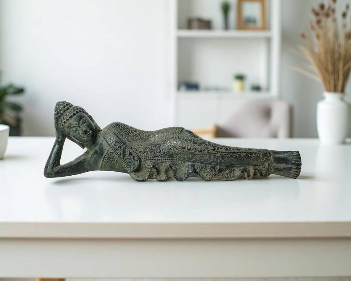 Reclining Buddha Bronze 14 Inch / 35 cm Long, Buddha Figurine, Budd...