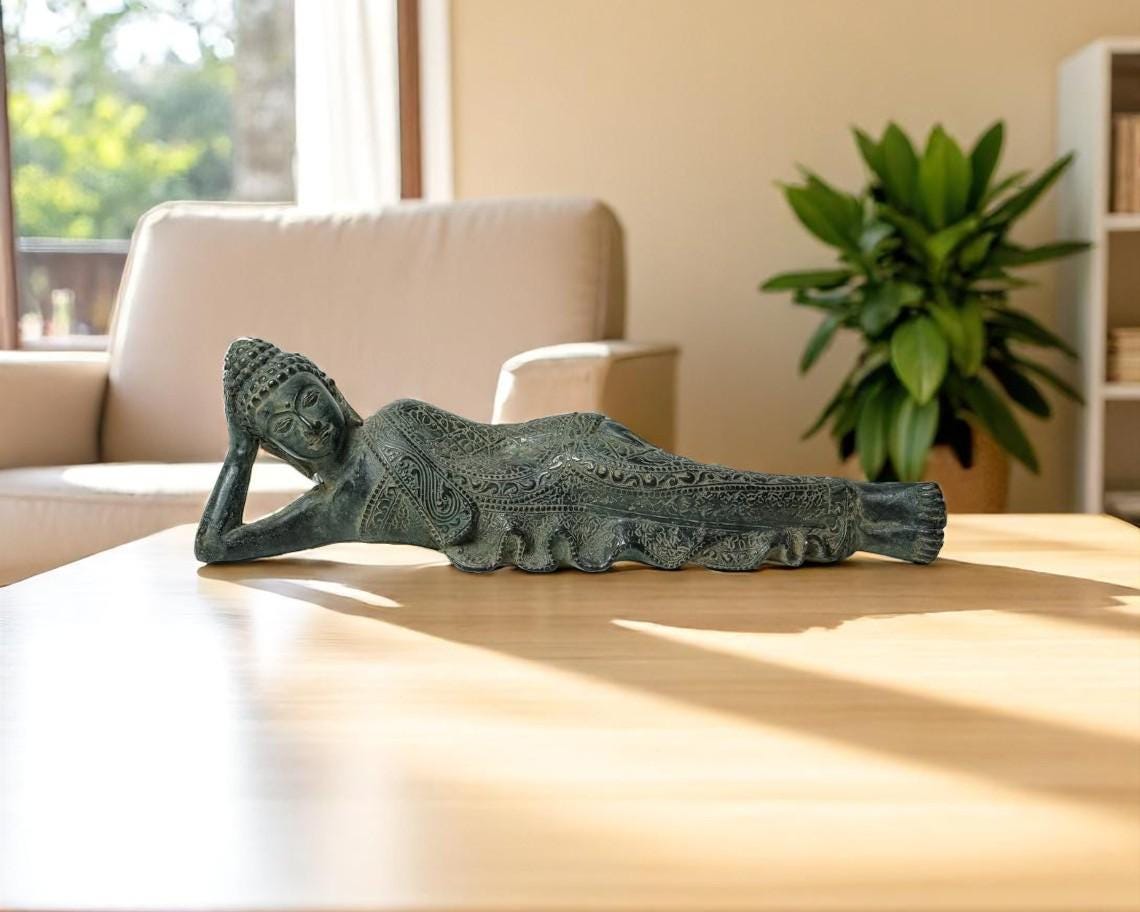 Reclining Buddha Bronze 14 Inch / 35 cm Long, Buddha Figurine, Buddha Bronze, Sleeping Buddha, Spiri...
