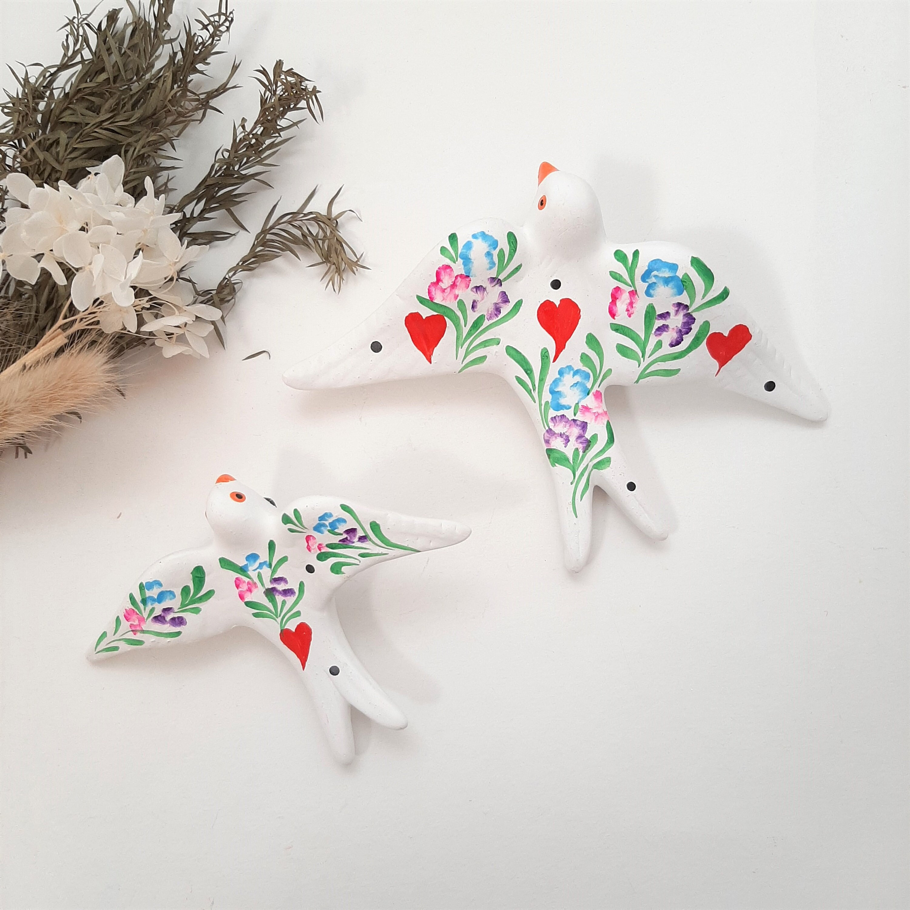 Ceramic White Bird With Heart Swallows are migratory birds that indicate the arrival of spring, whic...