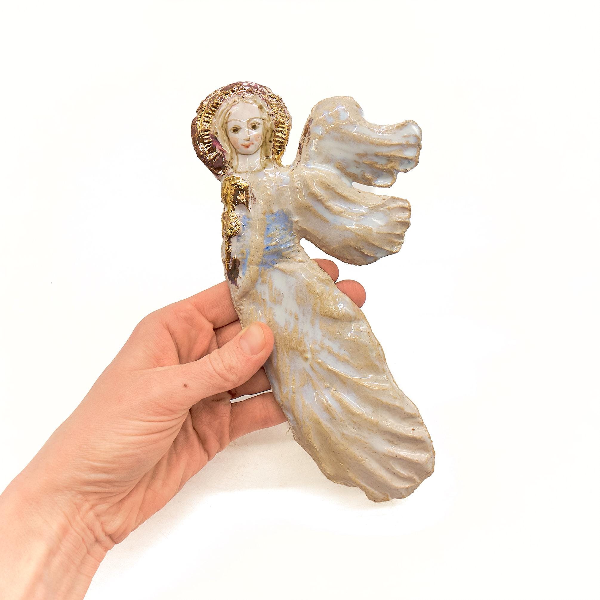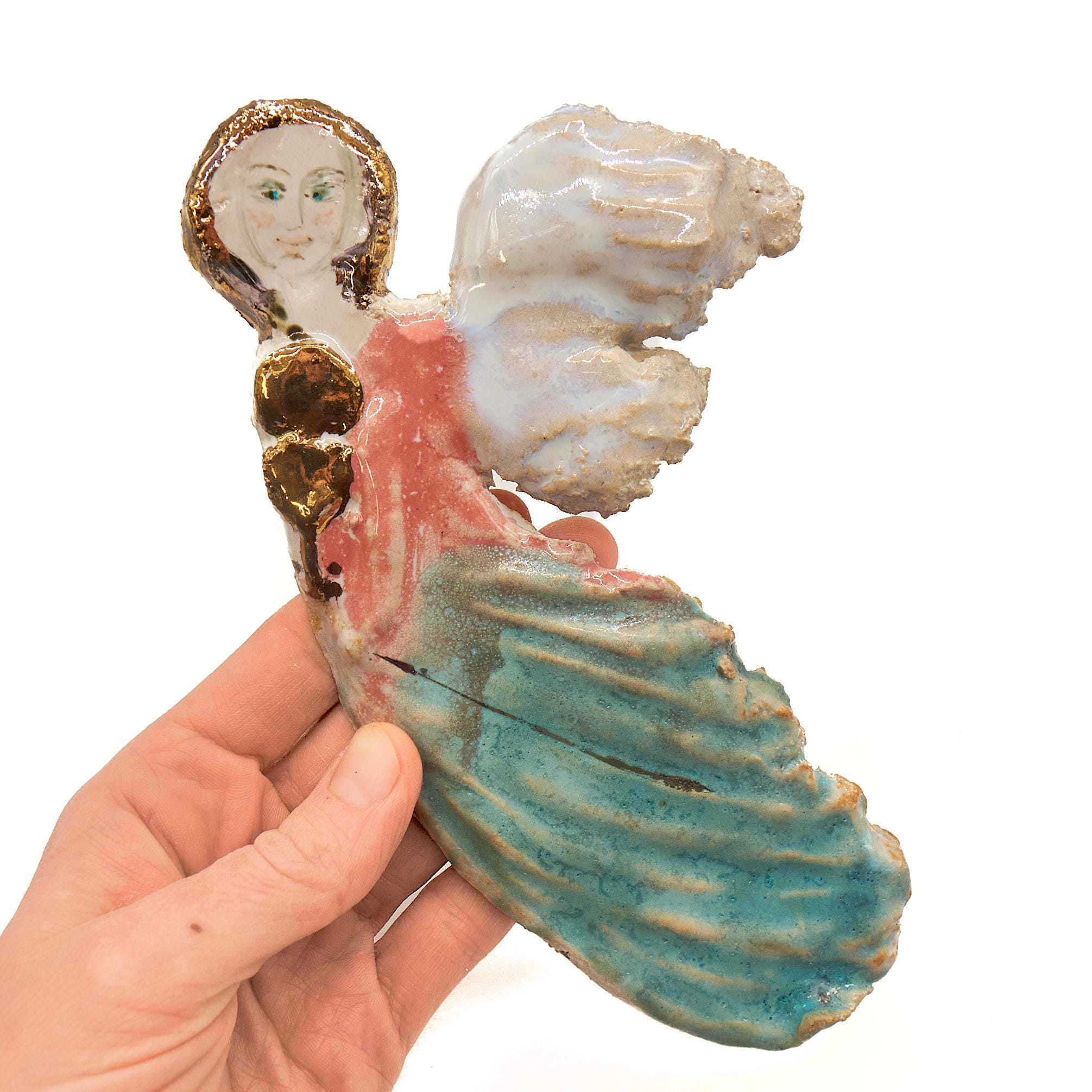 Ceramic angel with hand-painted face, ceramic wall art,ceramic ange...