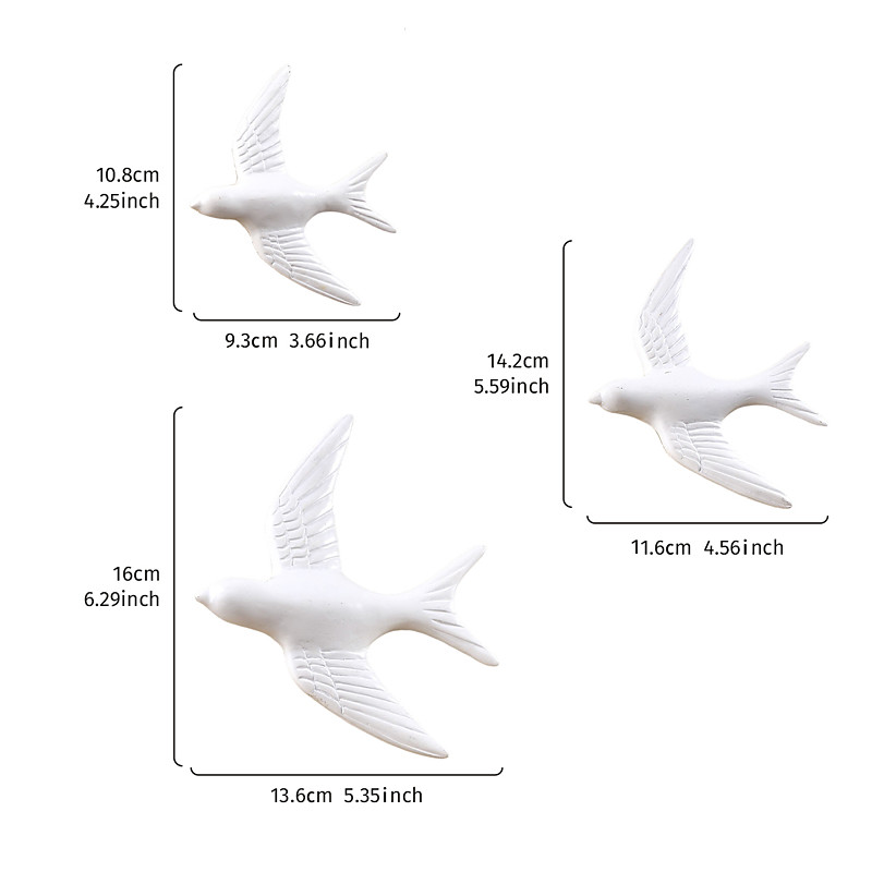 3PCS Modern Resin Flying Bird Wall Decor, Minimalist Swallow Wall H...