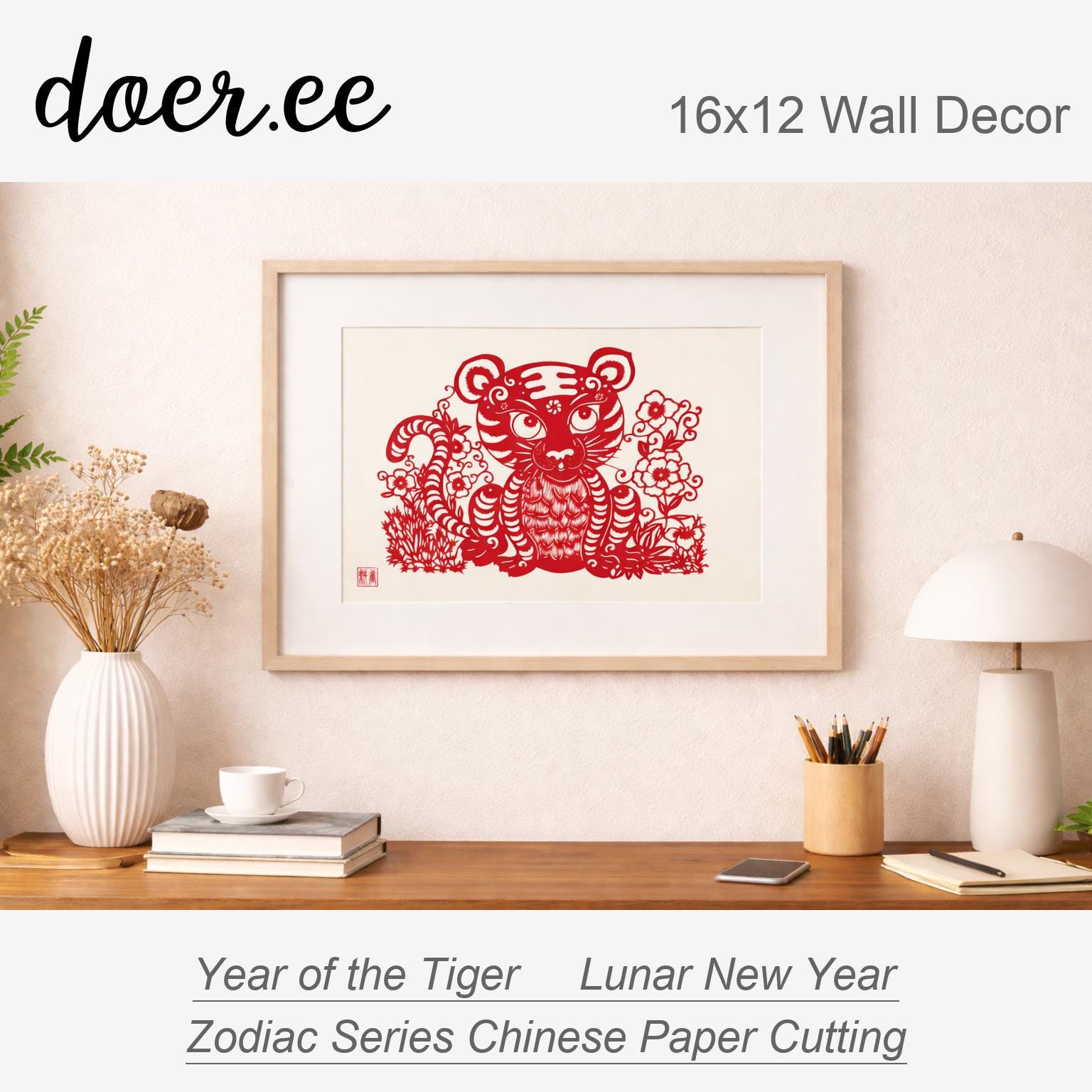 Chinese Tiger Zodiac Paper Cutting inspired by traditional Chinese folk art. This handcrafted Year o...