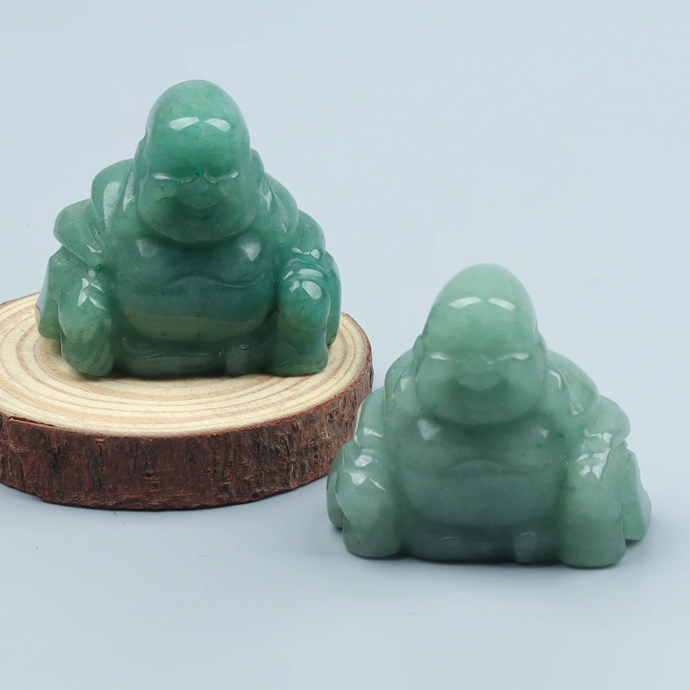 1.5" Hand Carved Jade Maitreya Buddha Figurine Natural Aventurin Crystal Reiki Healing Quartz C...
