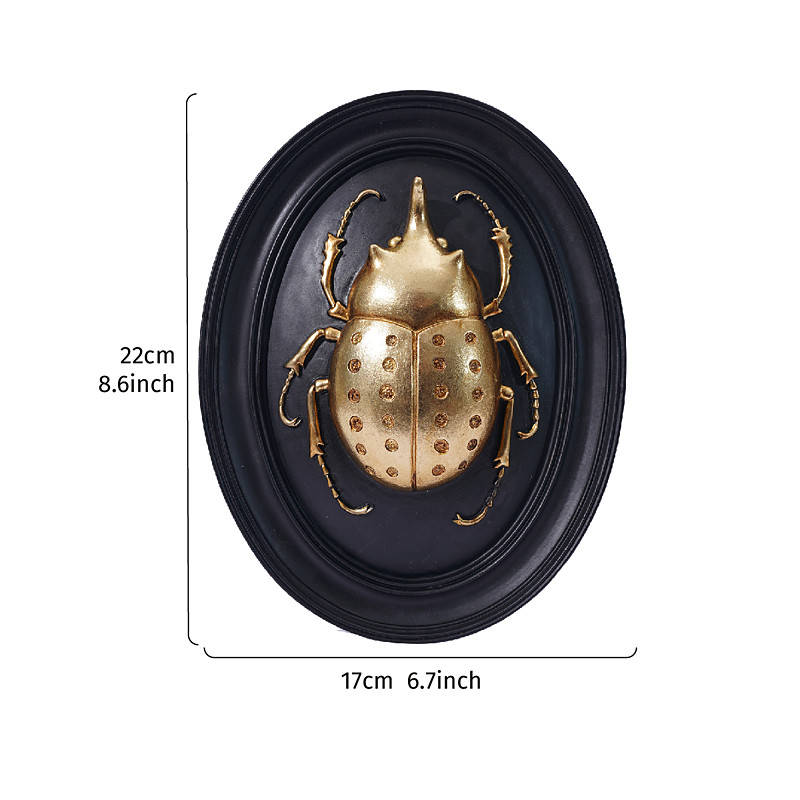 Golden Beetle Wall Decor, Black Oval Frame Insect Ornament, Handmad...