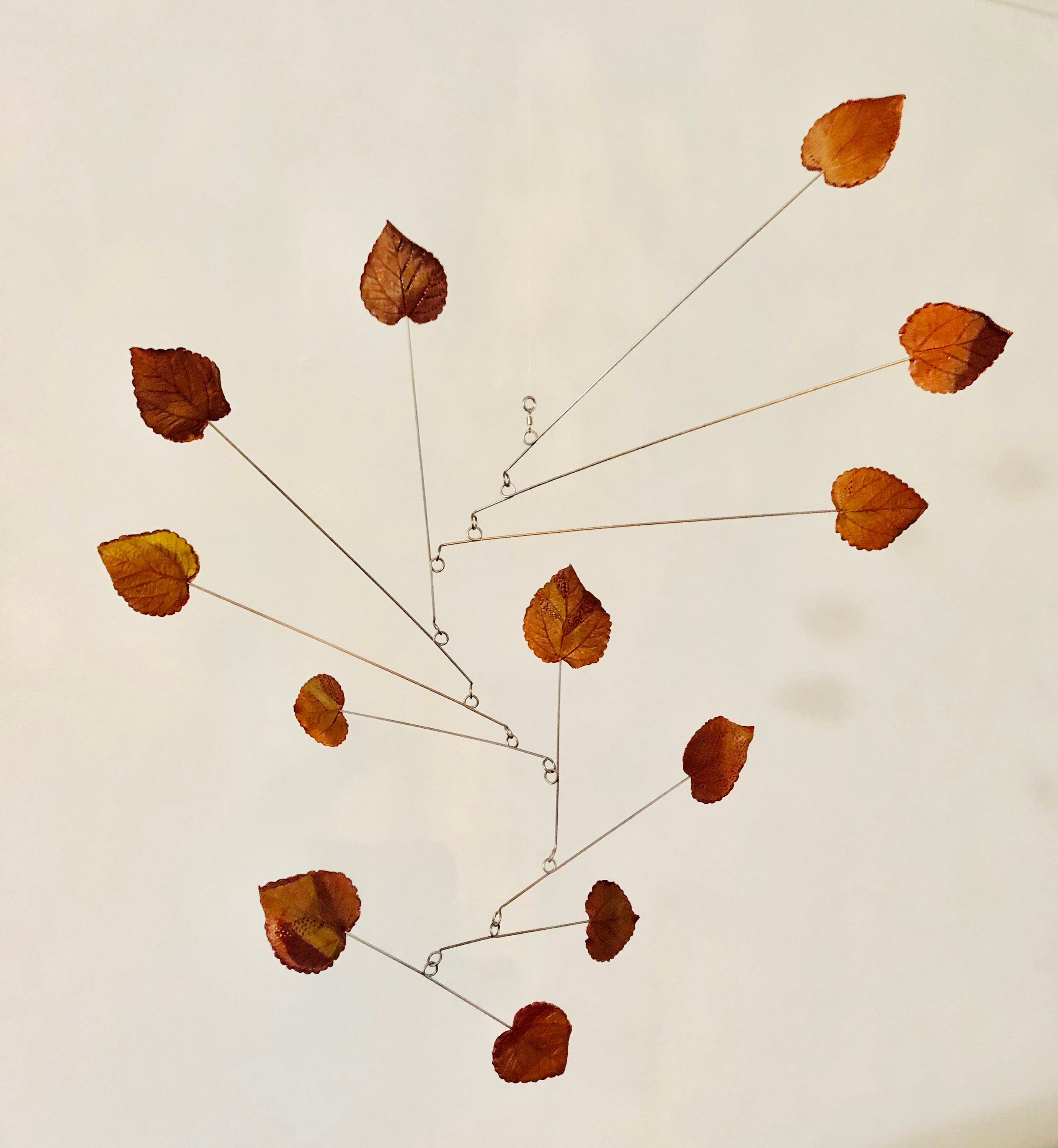 Mobile Kinetic Sculpture Copper Leaf Modern Copper Bronze Gold Leaf...