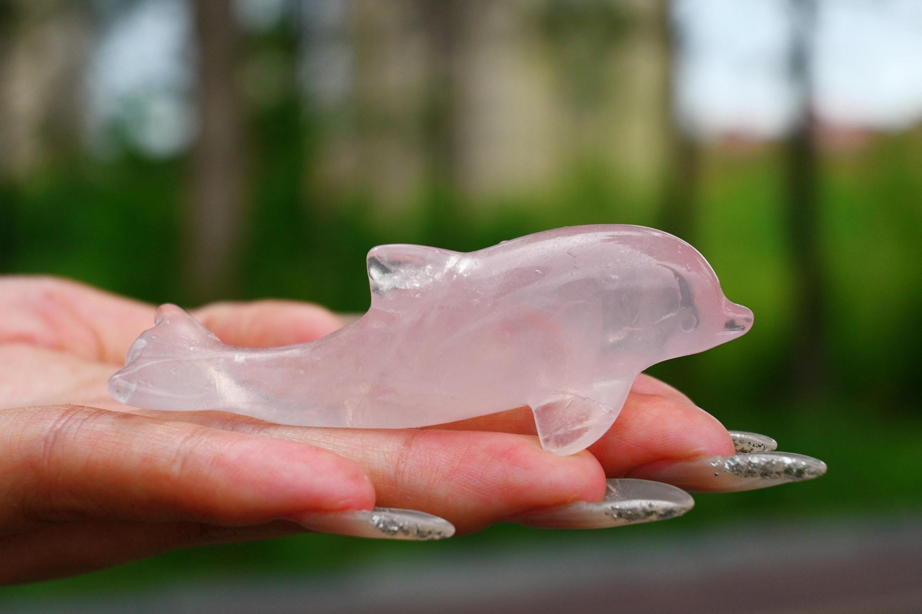 2.6'' Natural Rose quartz dolphin,Quartz crystal,Crystal decor, Cry...