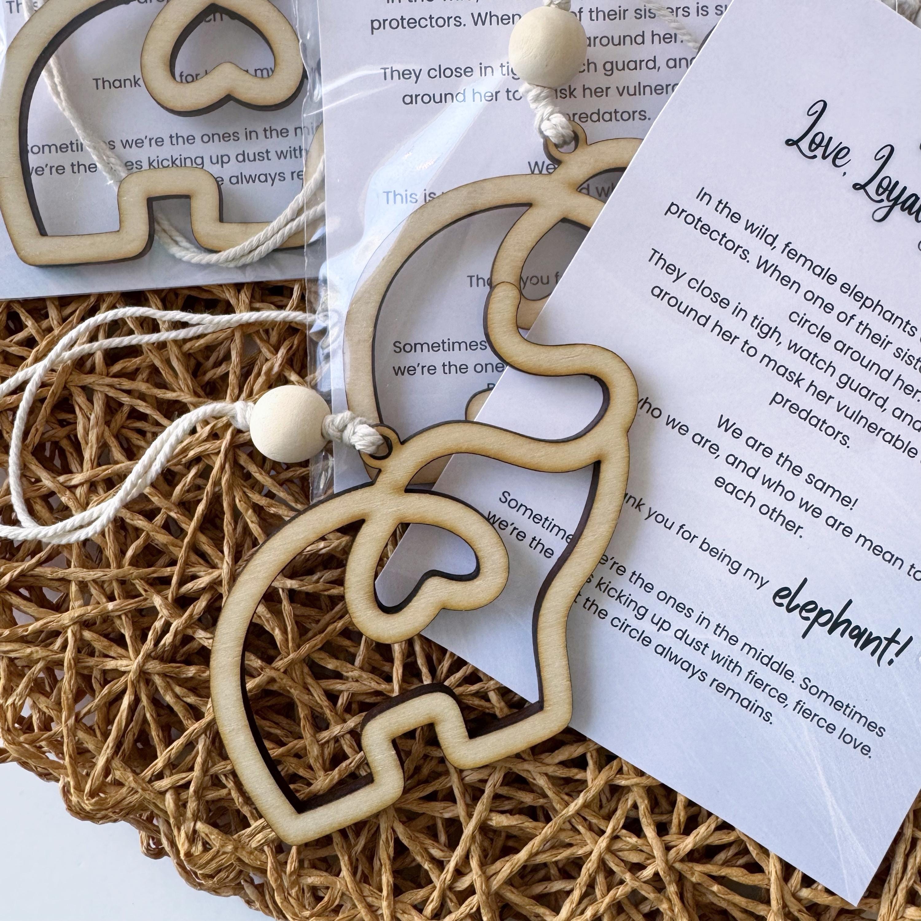 "Beautiful and meaningful Wooden Elephant Ornament, perfect to celebrate friendships and sister...