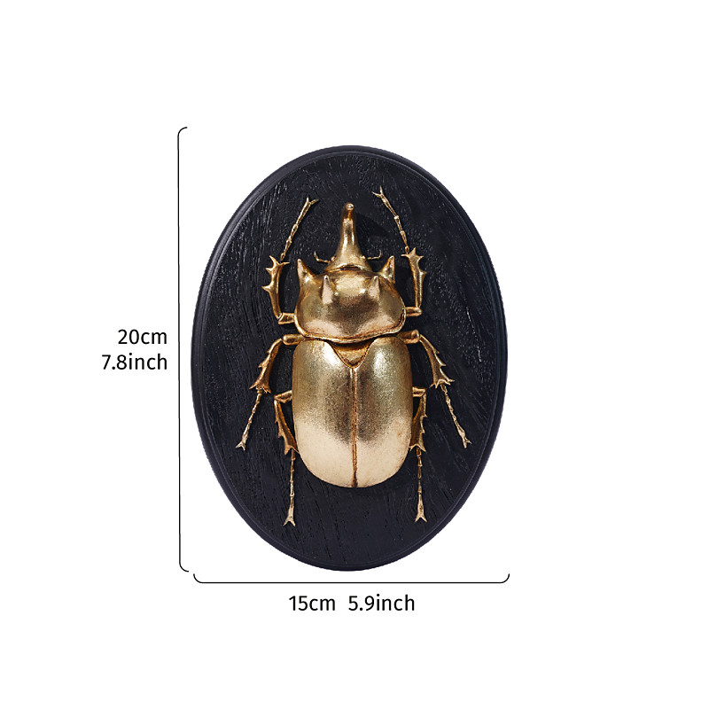 Golden Beetle Wall Decor, Black Oval Frame Insect Ornament, Handmad...