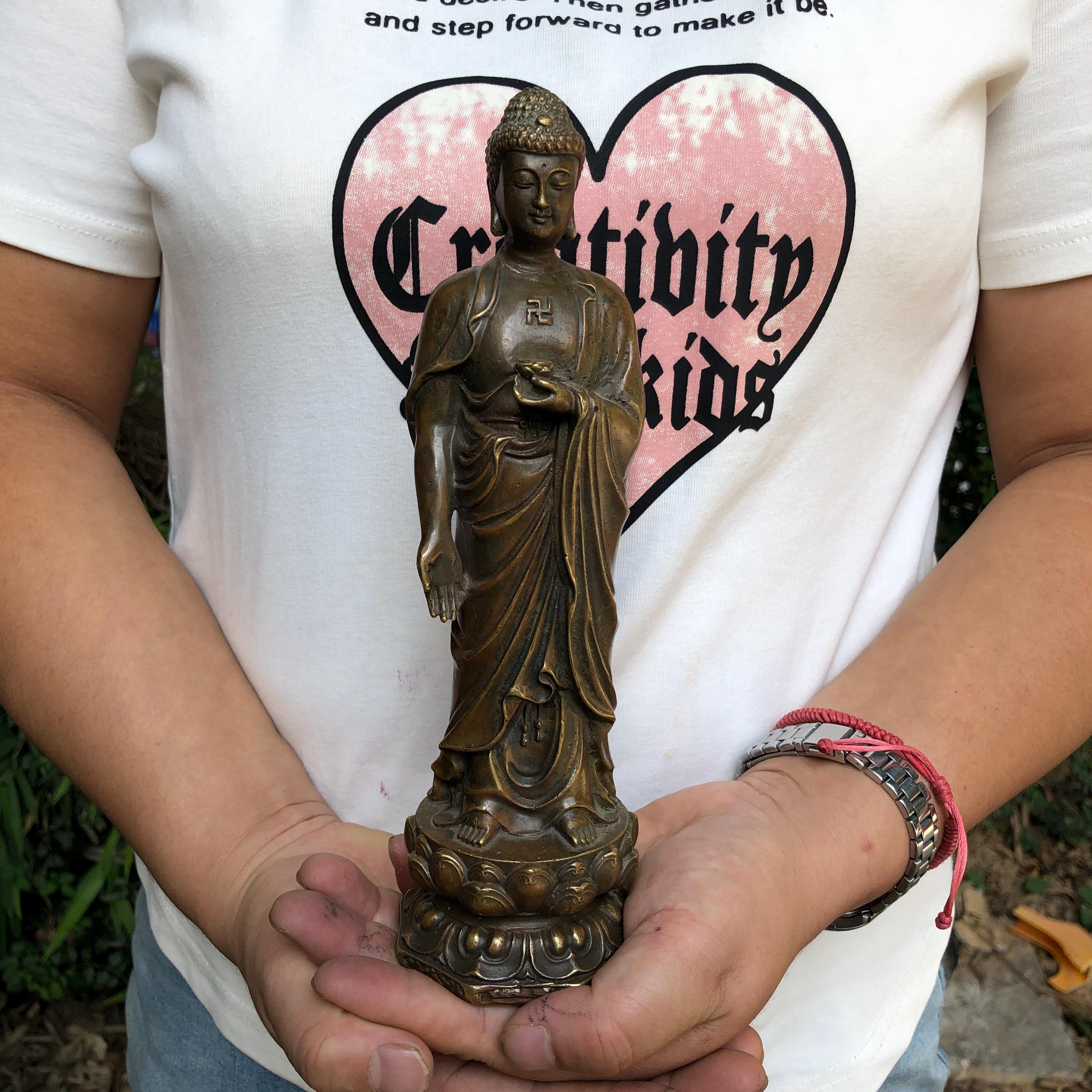 VTG Antique Bronze buddha Amitayus/Amitabha standing on a lotus bas...