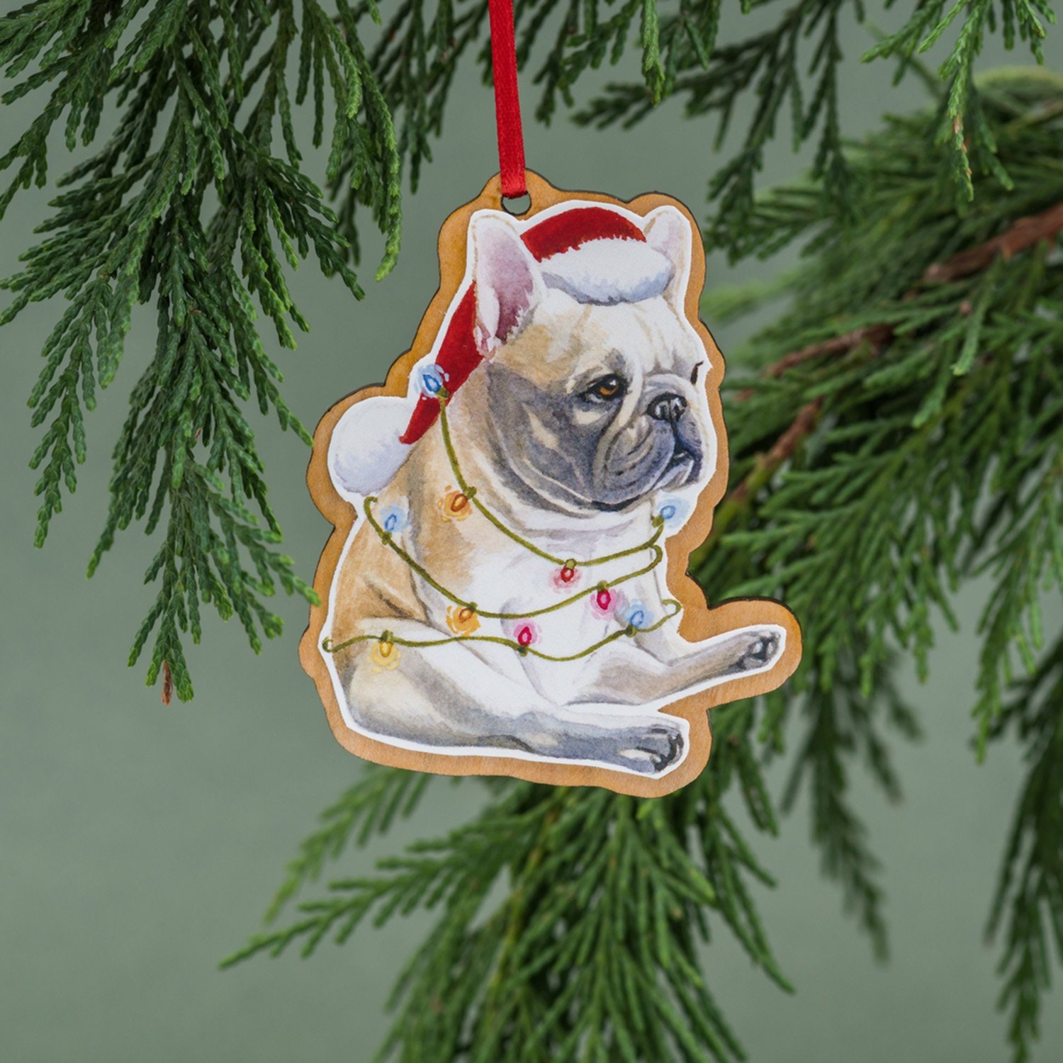 French Bulldog, Christmas Ornament, Wood Tree Ornament, Handmade, W...