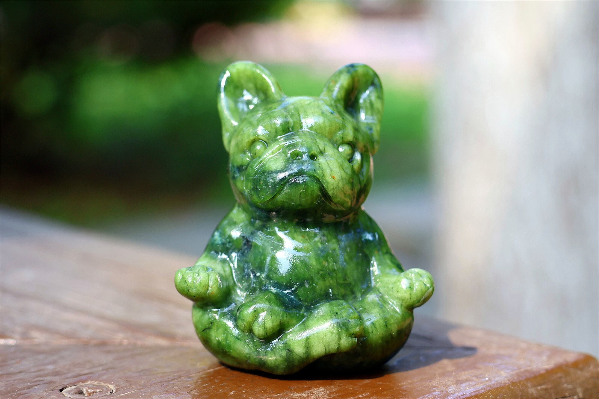 2.3'' Natural Olive Green jade French Bulldog decor,Crystal dog car...