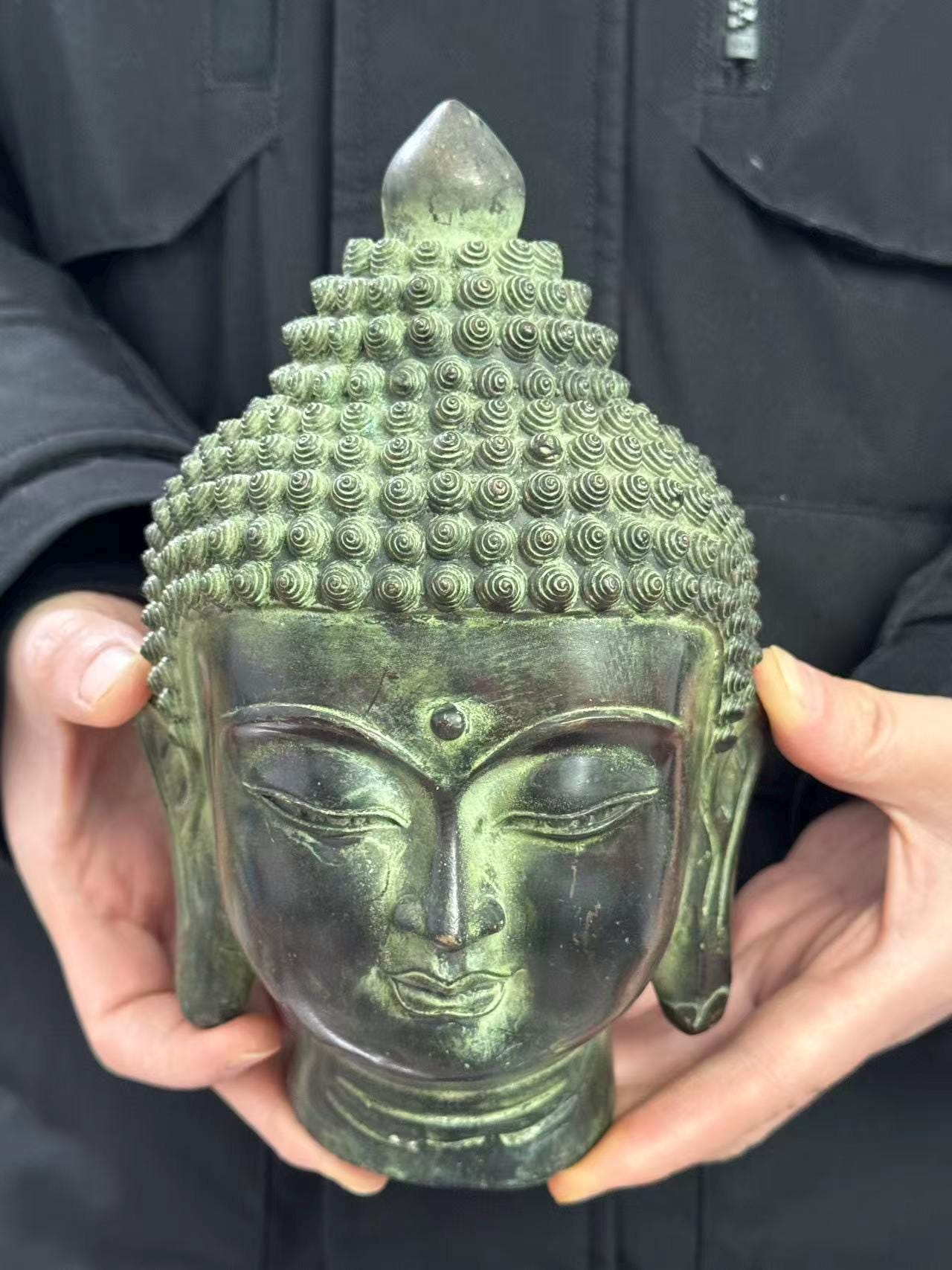 Vintage style Antique Bronze Buddha Head statue, Sakyamuni Buddha F...
