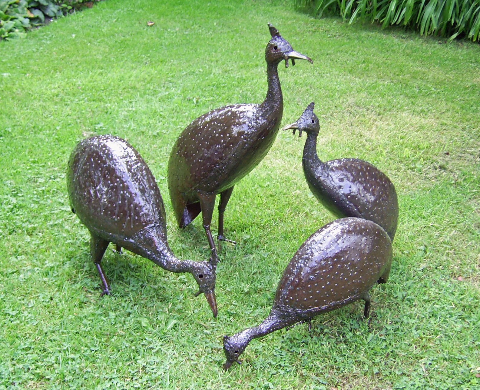 • Guinea Fowl Garden Ornament Sculpture: Recycled Steel Garden Art