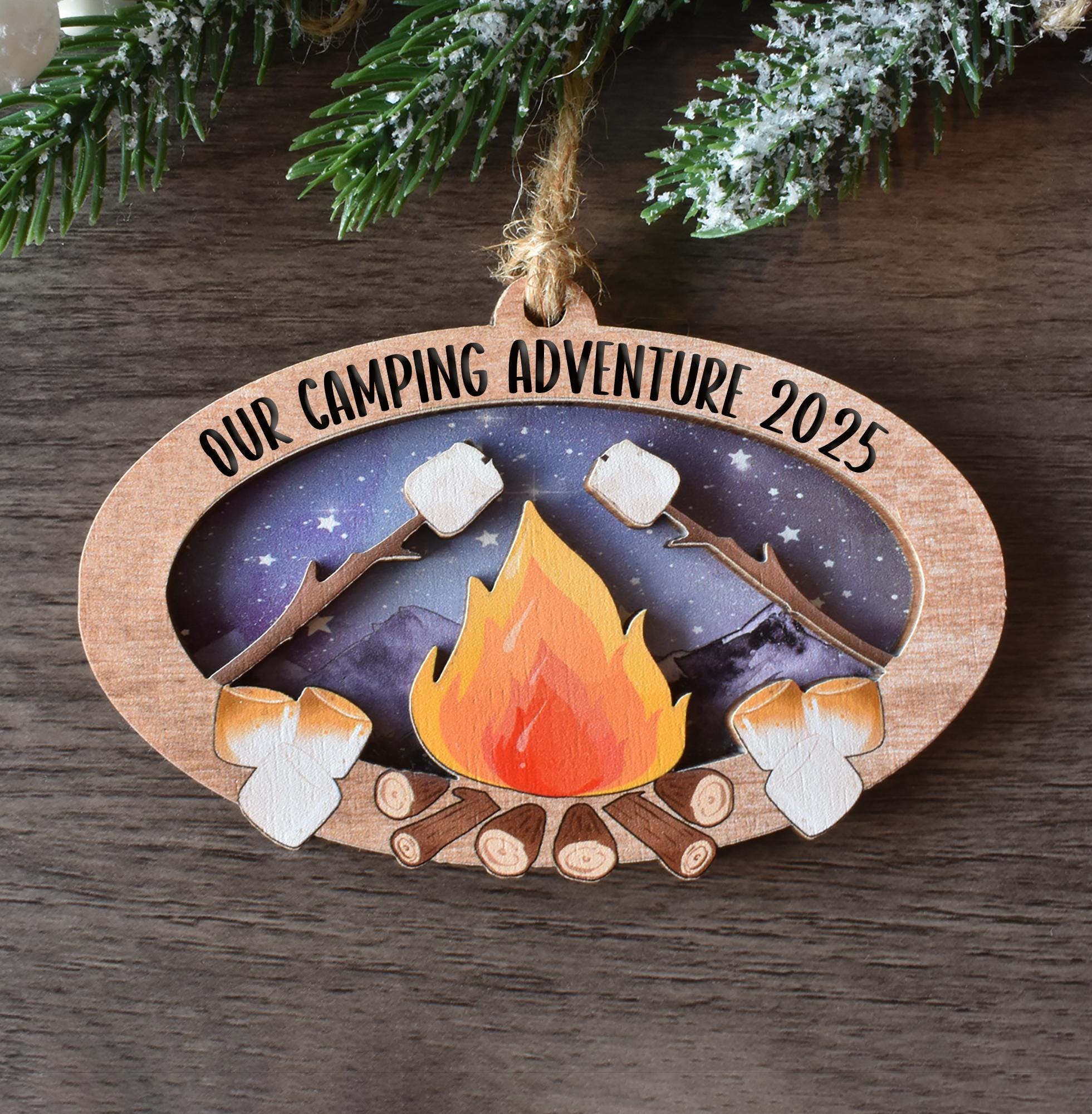 • Personalized Campfire S'mores Ornament, Custom Camper gift, Great O...