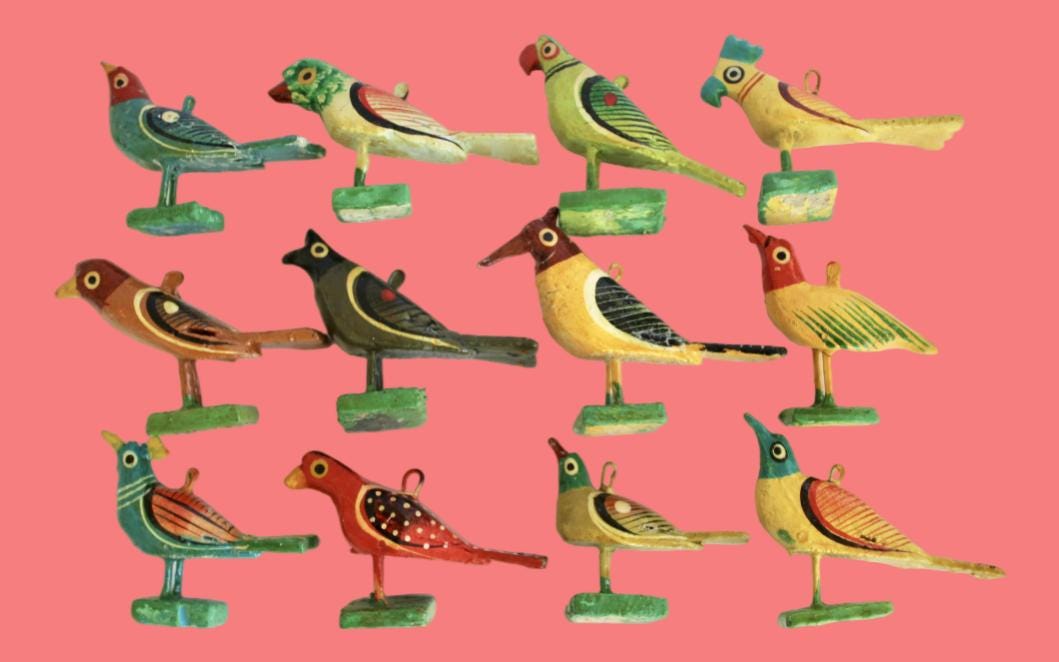 • "Set of 12~hand carved & painted bird ornaments~ exotic bi...
