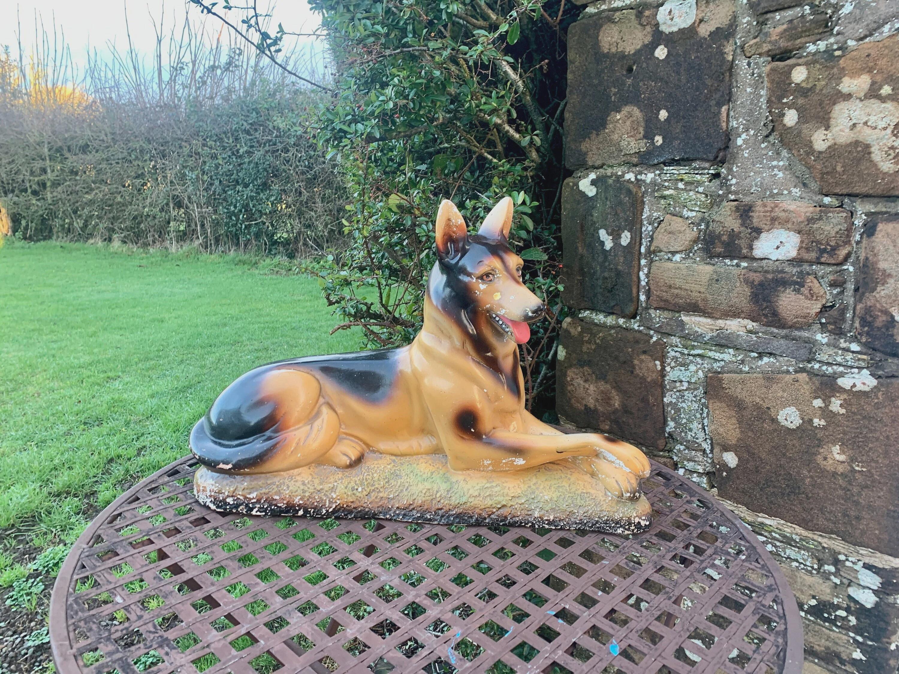 Description: LARGE Vintage British Chalk Statue of Alsatian German Shepherd Dog circa 1930s 1940s or...