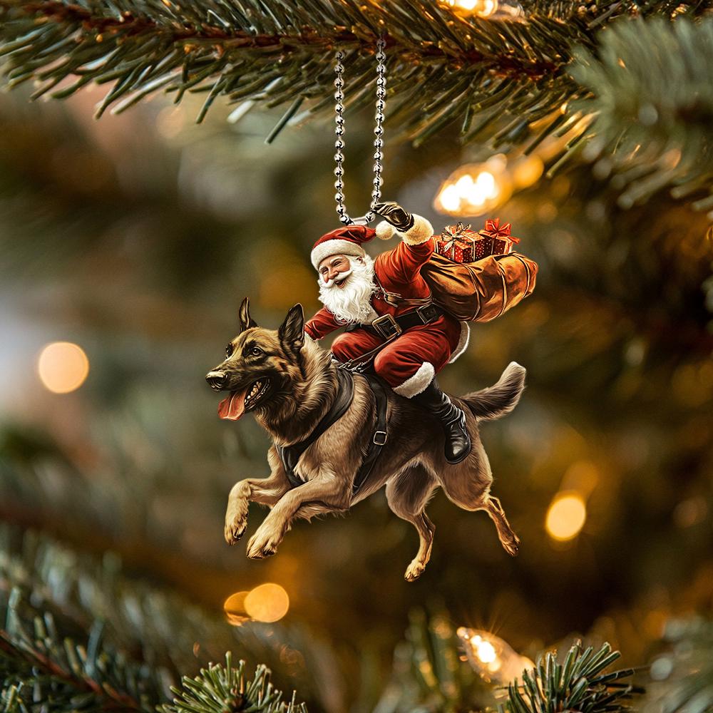German Shepherd Ornament, Santa and Dog Ornament, 2D Flat Ornament,...