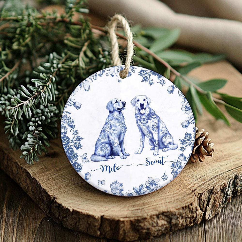 Custom Dog Breeds Chinoiserie Toile De Jouy Style, Custom Dog Ornam...