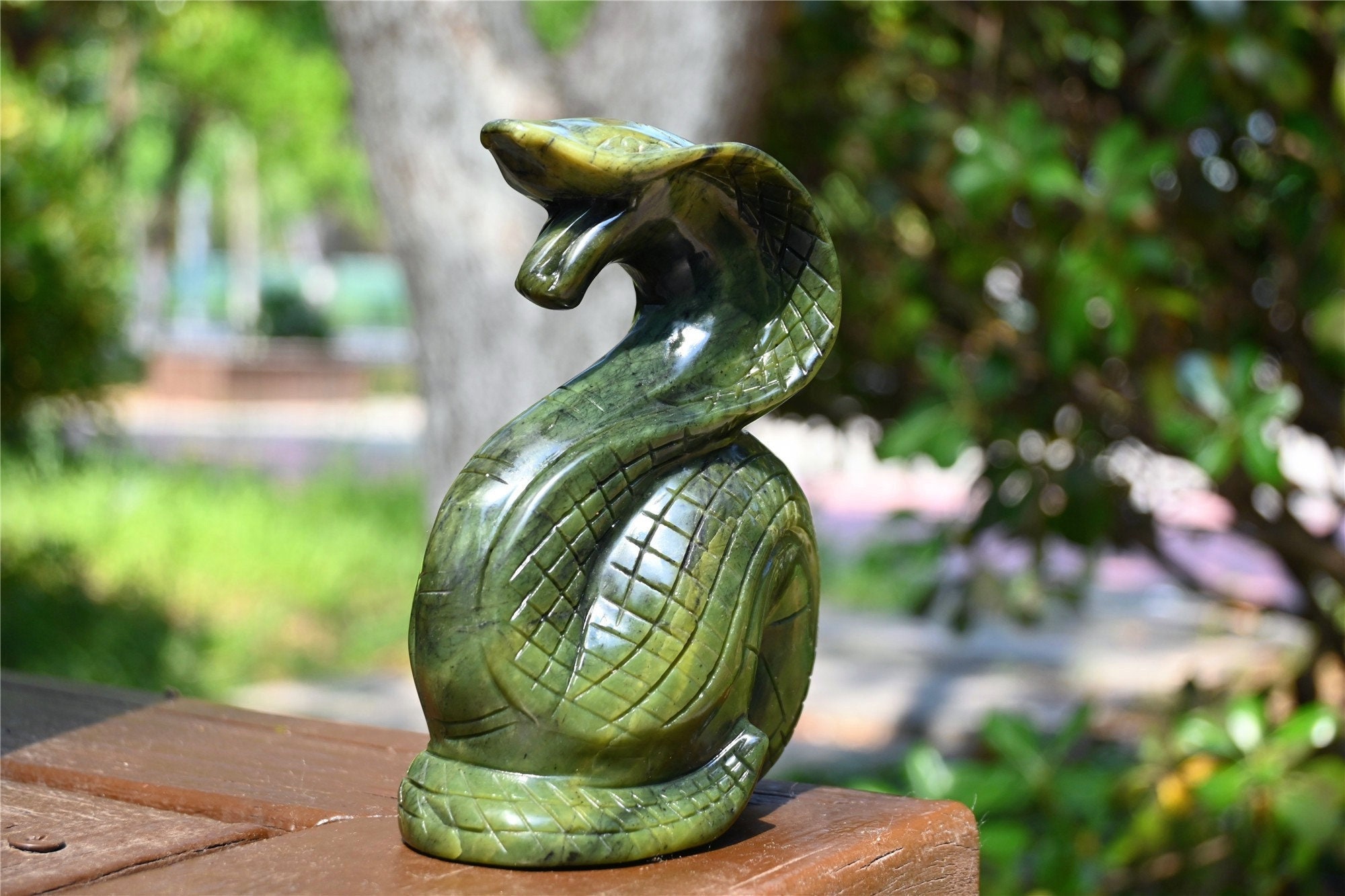 5.4'' Natural Olive Green jade snake carved,Crystal snake decor,Cry...