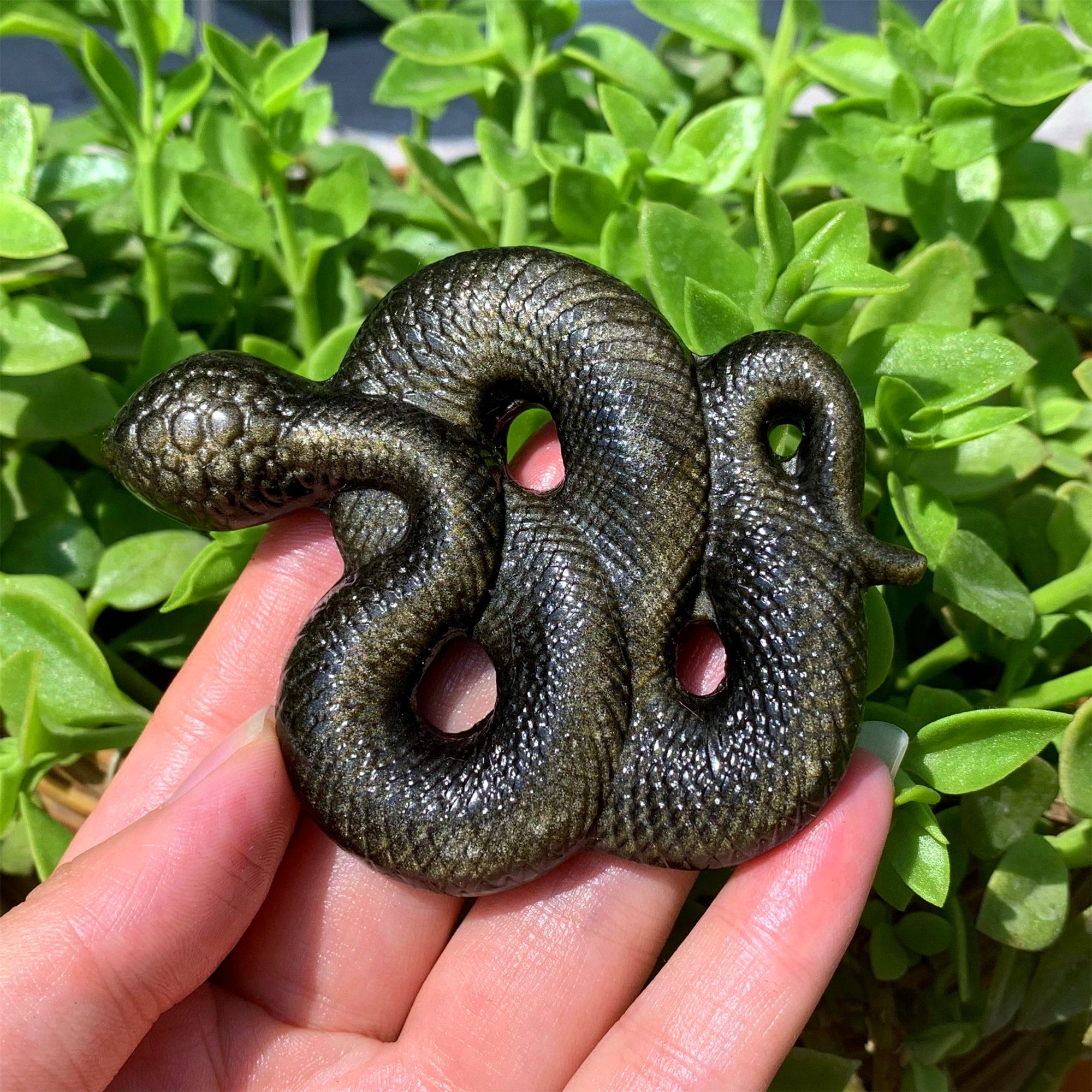 "3.4\"+ Natural Gold Obsidian Snake,Crystal Snake,Quartz ...