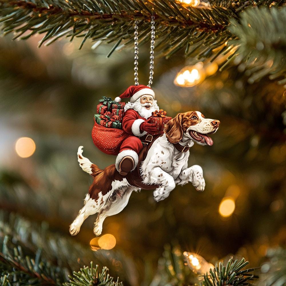 2D Flat Funny English Setter Ornament, English Setter Dog, Santa an...