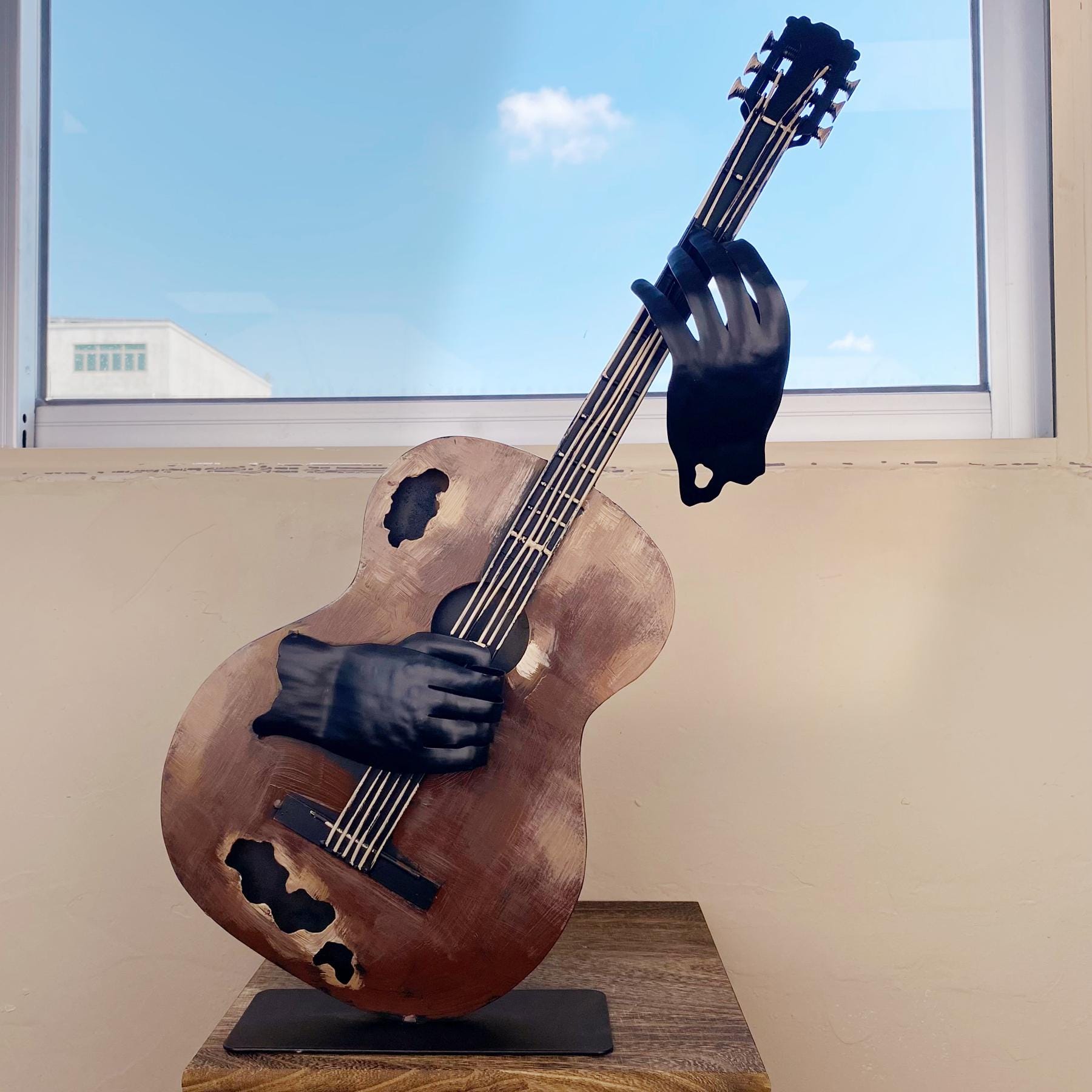 "23\"H Handmade & Hand-painted Metal Guitar Sculpture...