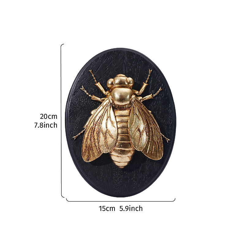 Golden Beetle Wall Decor, Black Oval Frame Insect Ornament, Handmad...
