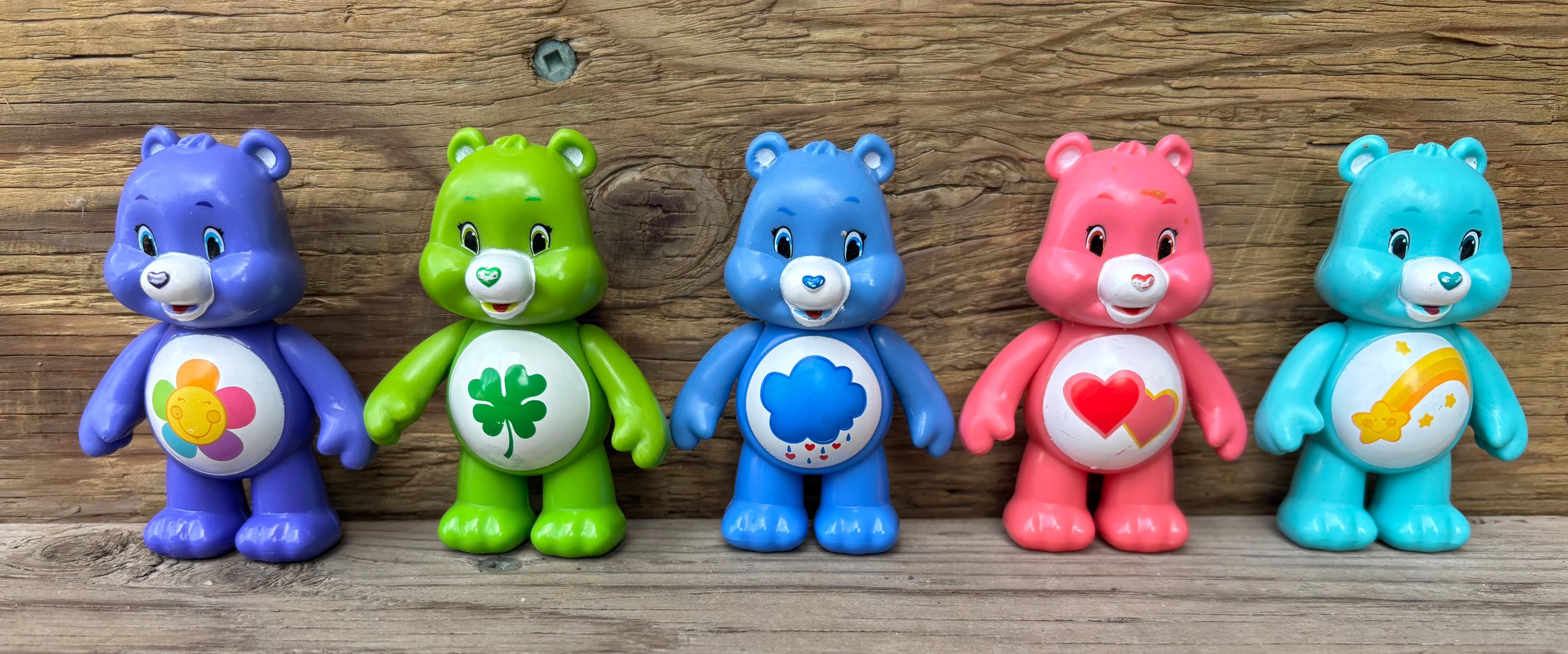 Choose from one of five different Lovable Care Bears, who have posable arms. Items are previously lo...