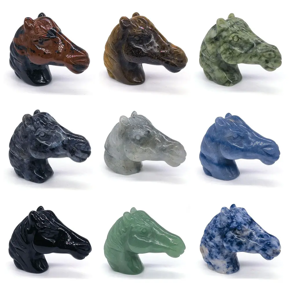 Hand Carved Crystal Horse Animal Figurine, Natural Stone, Rose Quartz, Mini Animal Horses Statue, Cr...