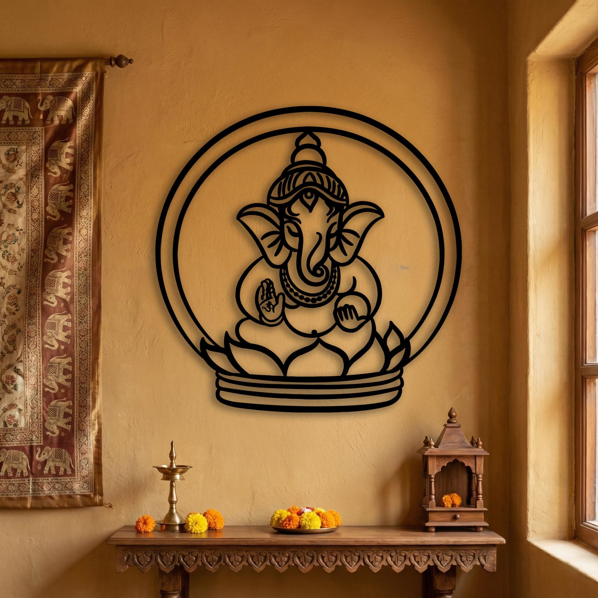 "Invoke blessings of wisdom and prosperity with this exquisite Ganesha metal wall art. This stu...