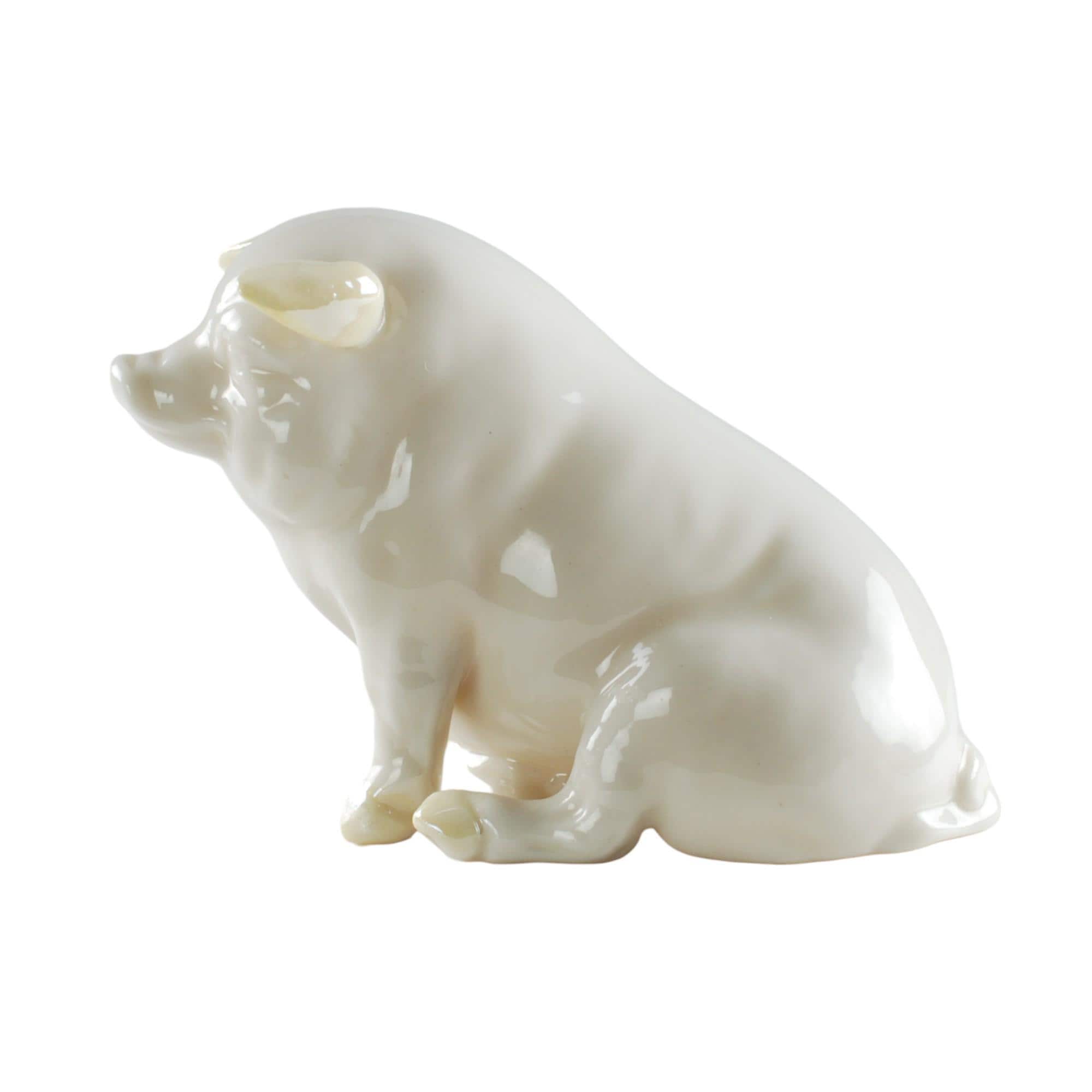 Large Vintage Belleek Irish Porcelain Pig Figurine, Sixth Mark 1965...