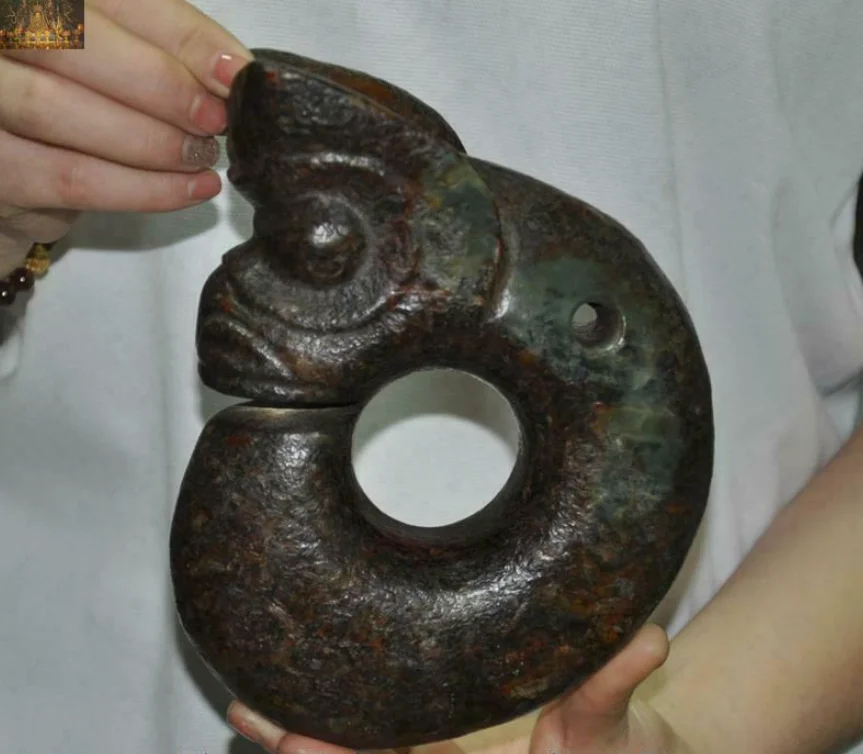 Old natural jade hand-carved statue of dragon exquisite handicraft