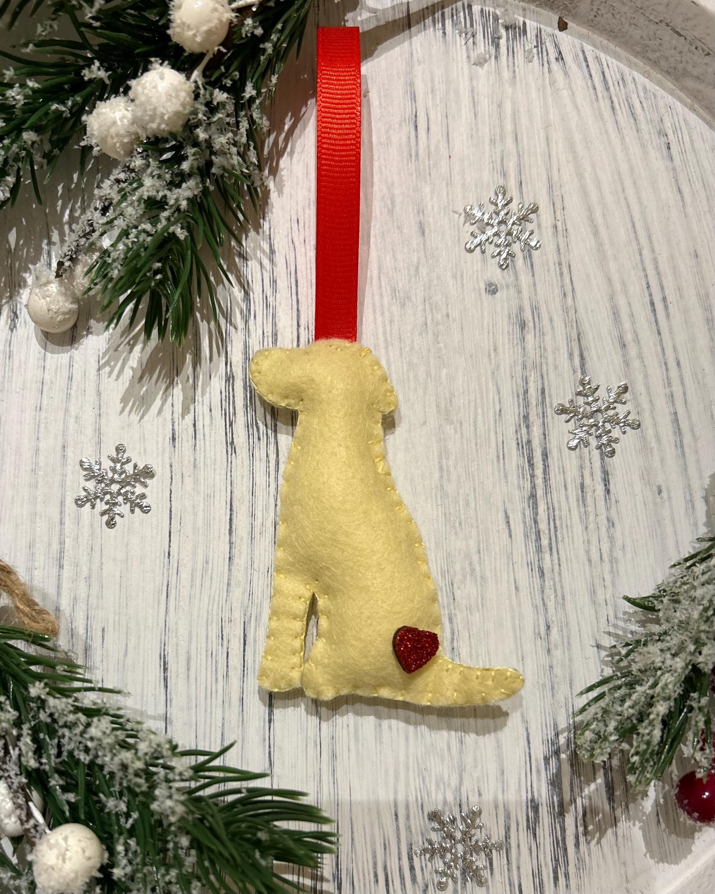 This if perfect for any Labrador owner. This is a yellow/ cream silhouette ornament with red glitter...