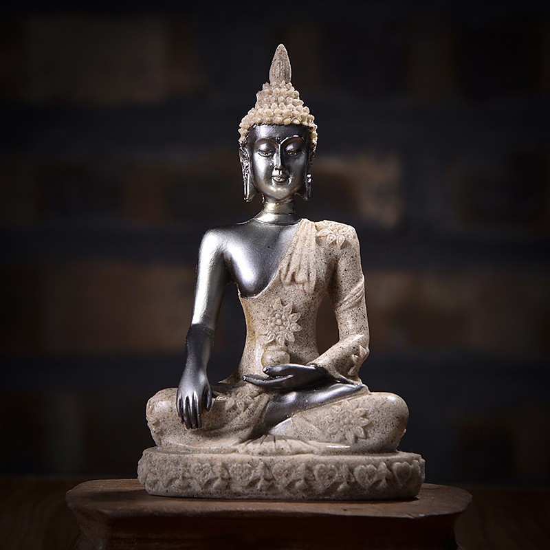 Sandstone Sitting Buddha Resin Statue,Southeast Asian Decorative Sc...