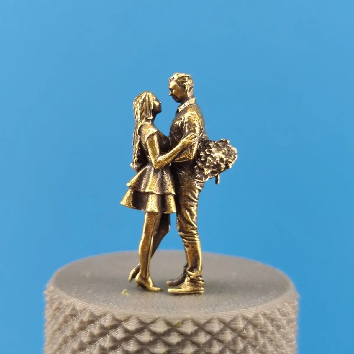 2.9cm Antique Brass Timeless Love Sculpture Couple with Flowers Min...