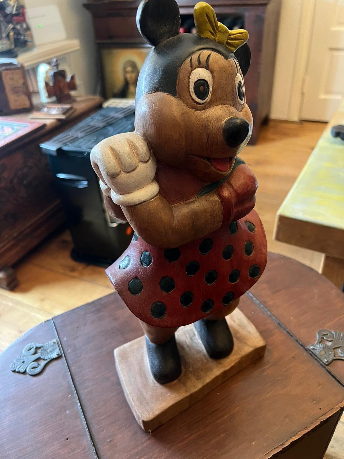 Beautiful large wood carving Minnie Mouse, 39x17x9.5cm