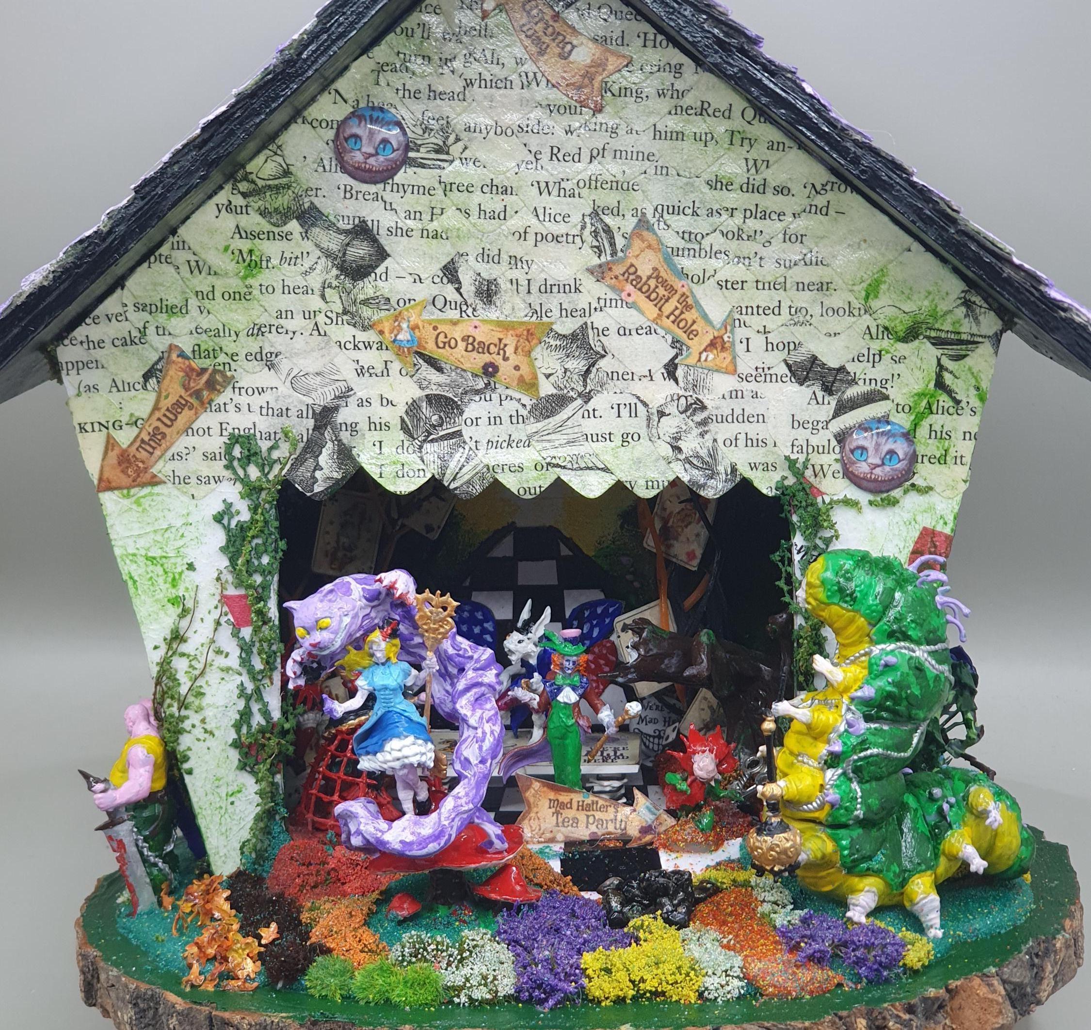 Alice in Wonderland dark art - twisted wonderland diorama decor - horror version made in a repurpose...
