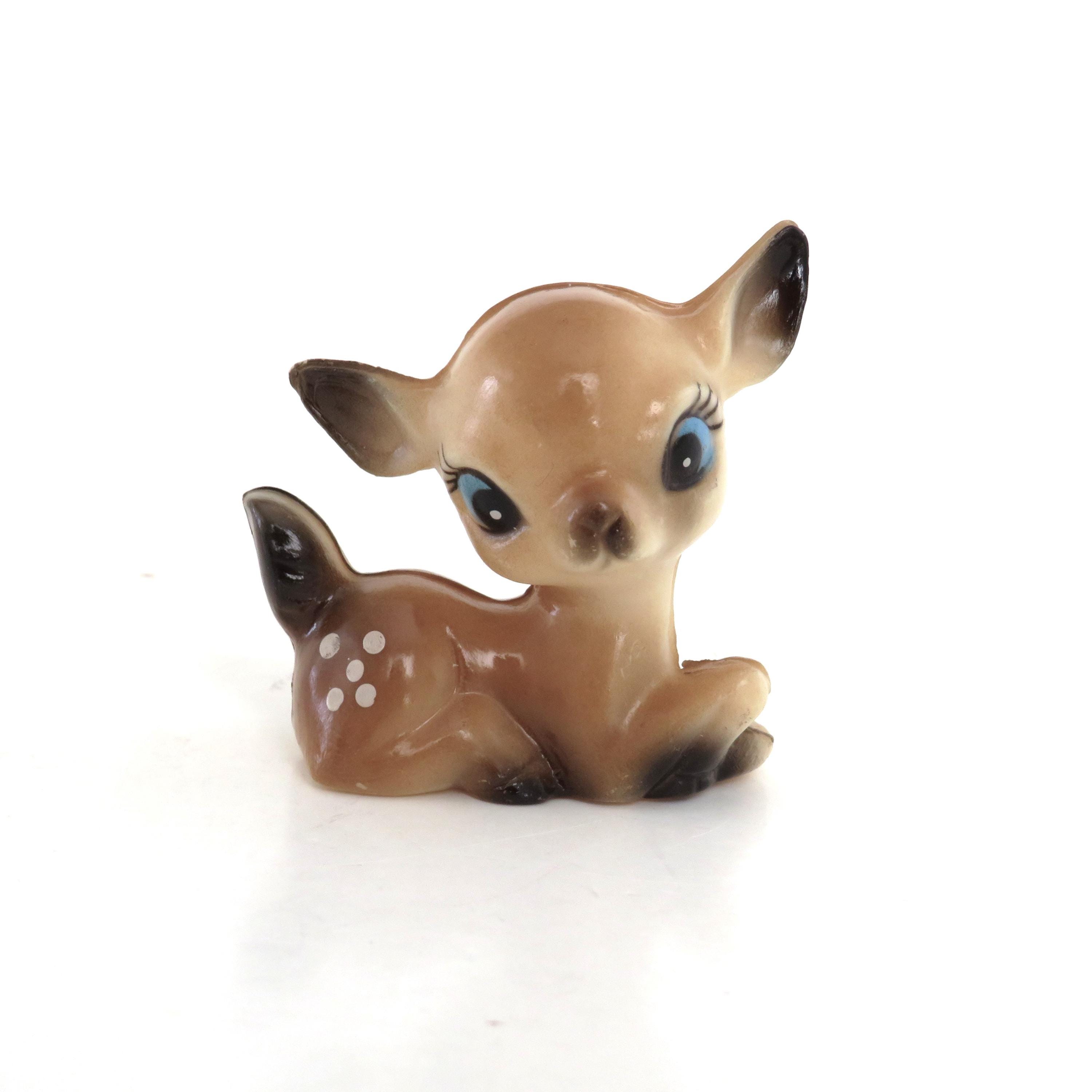 Adorable vintage miniature plastic fawn figurine. Made in Hong Kong. Measures approx. 2 inches tall ...