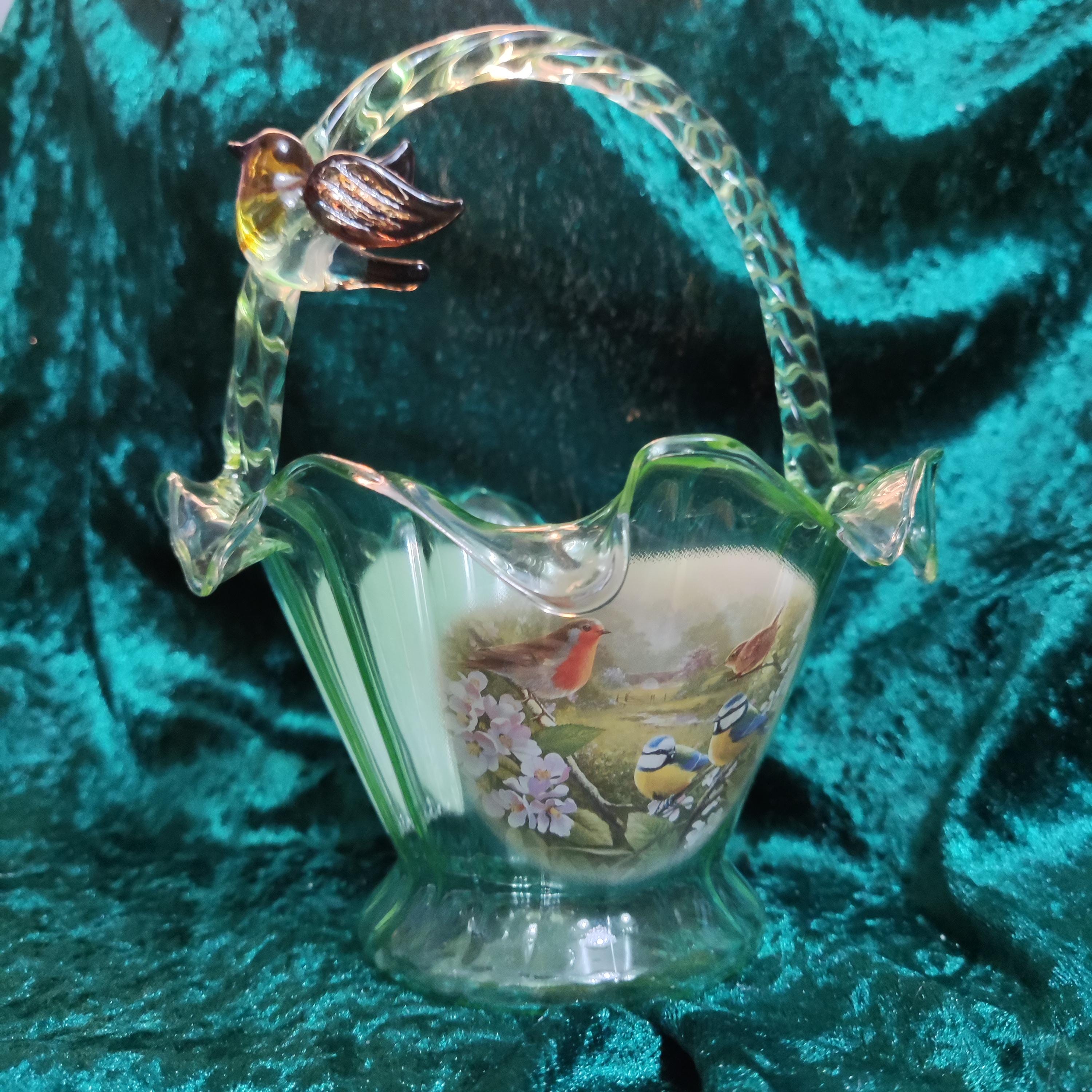Absolutely stunning glass basket by the Bradford exchange, called garden sentiments, both sides have...