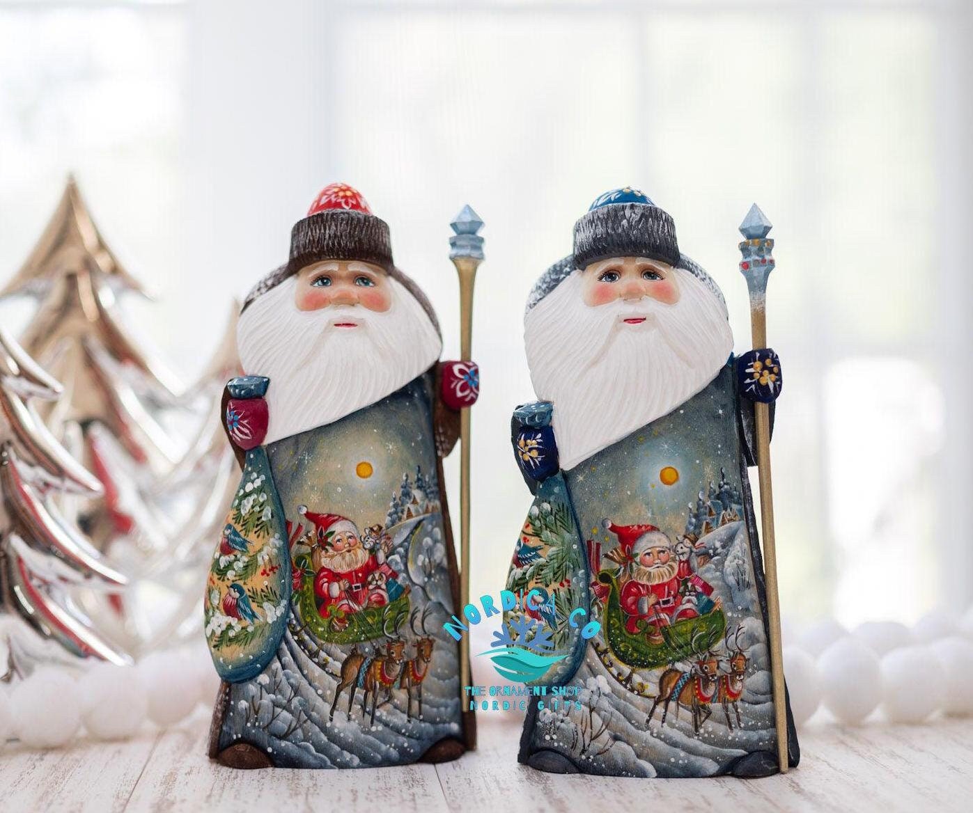 "NEW! Wooden hand carved and hand painted Santa, wooden handmade Nordic Santa, carved Santa fig...