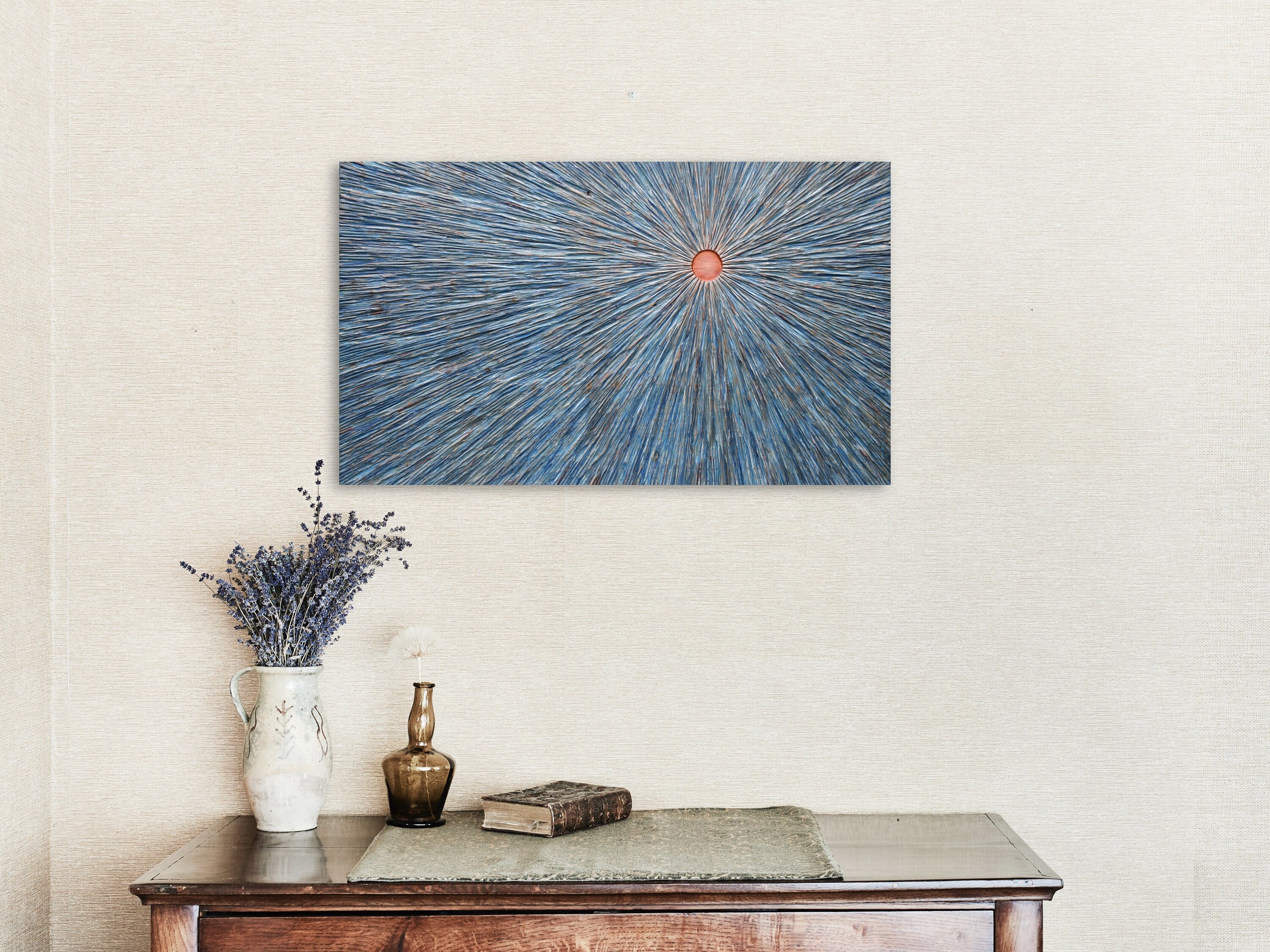 "Textured Wall Art is a wood carving which depicts the radiance of the amber sun. The entire pi...
